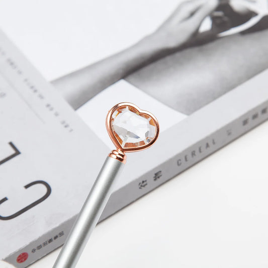 1 Piece Lytwtw's Stationery School Supplies Ballpoint Pen Wedding Crystal Diamond Heart Metal Rose Gold Office Luxury Spinning