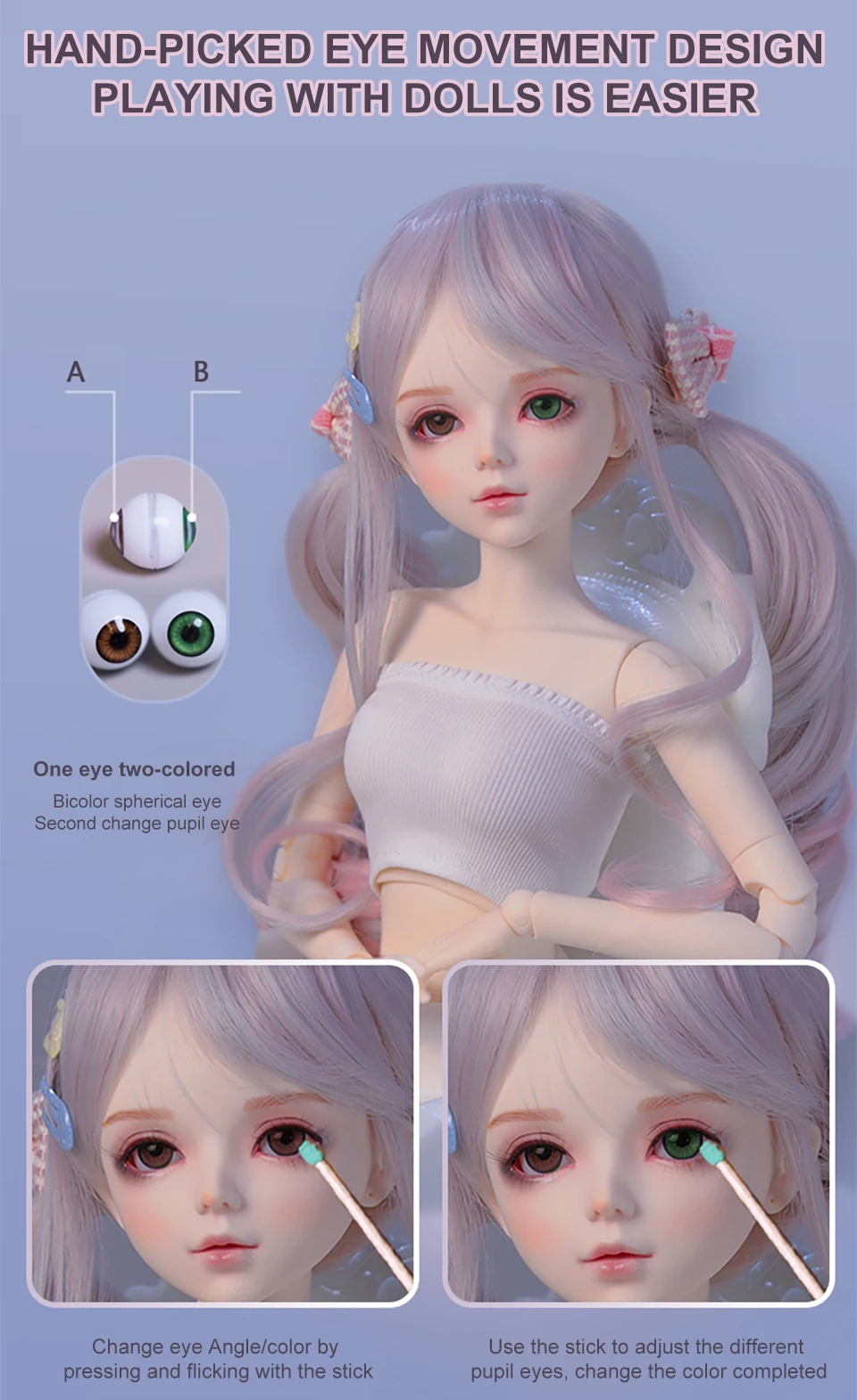 1/3 Bjd Makeup Doll Head 60CM Doll Designer makeup Two colored eyes Mechanical Joint Body DIY Doll Kids Girls Doll Toy Gift