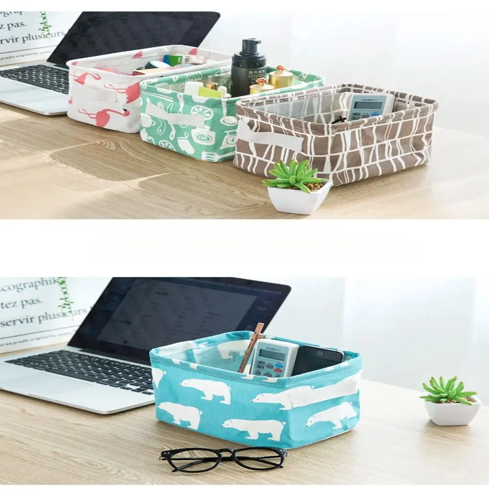 1pc Cotton Linen Fabric Waterproof Desktop Sundries Basket Storage Box Cosmetic Toy Organizer Underwear Socks Clothes Storagebag