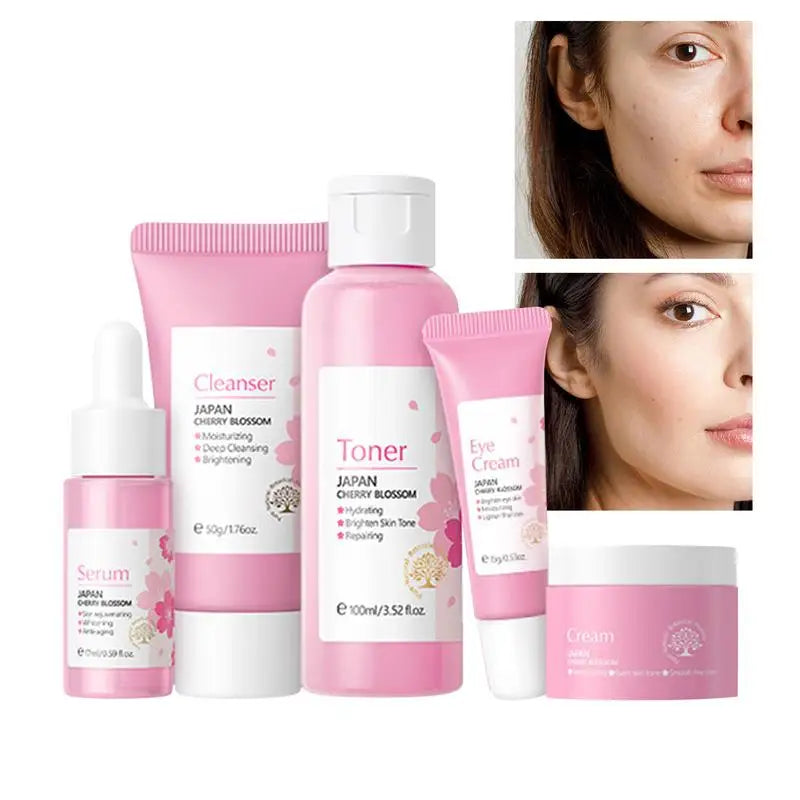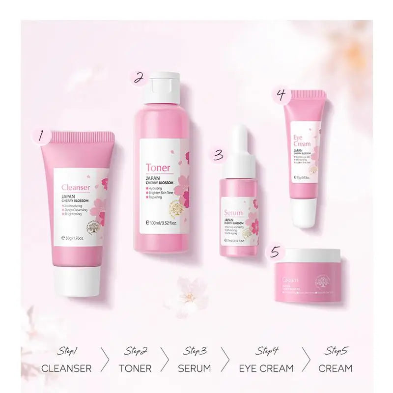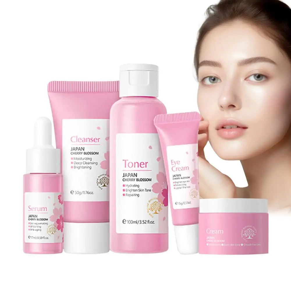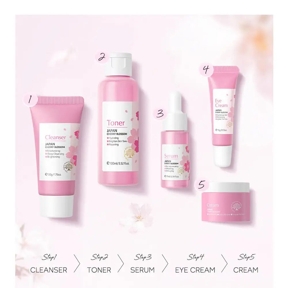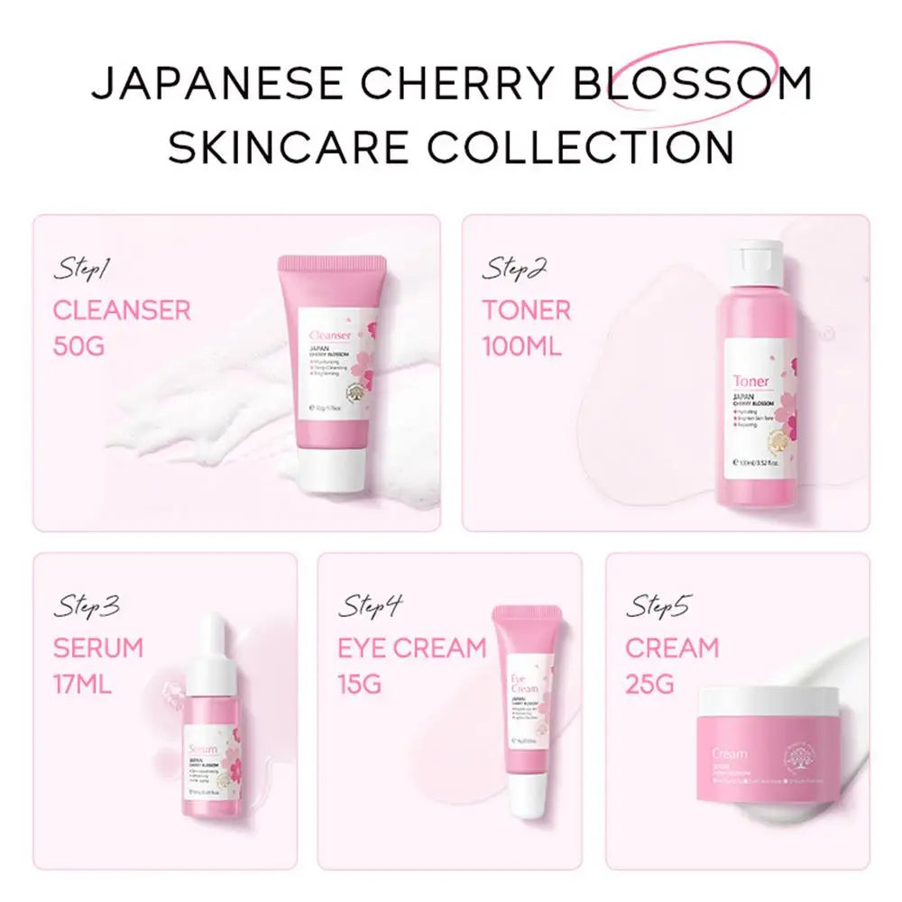 5pcs Japan Sakura Essence Face Cream Cherry Blossom Facial Cream Moisturizing Anti Wrinkle Anti Aging Korean Skin Care set