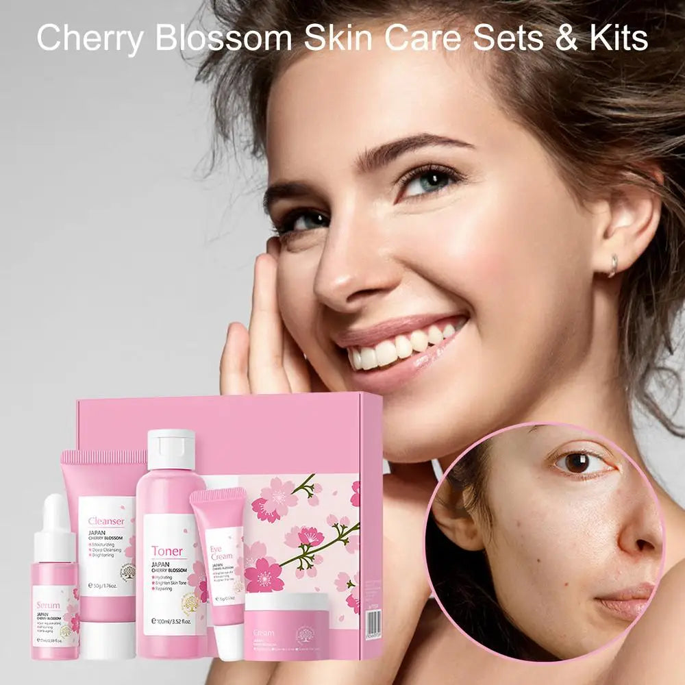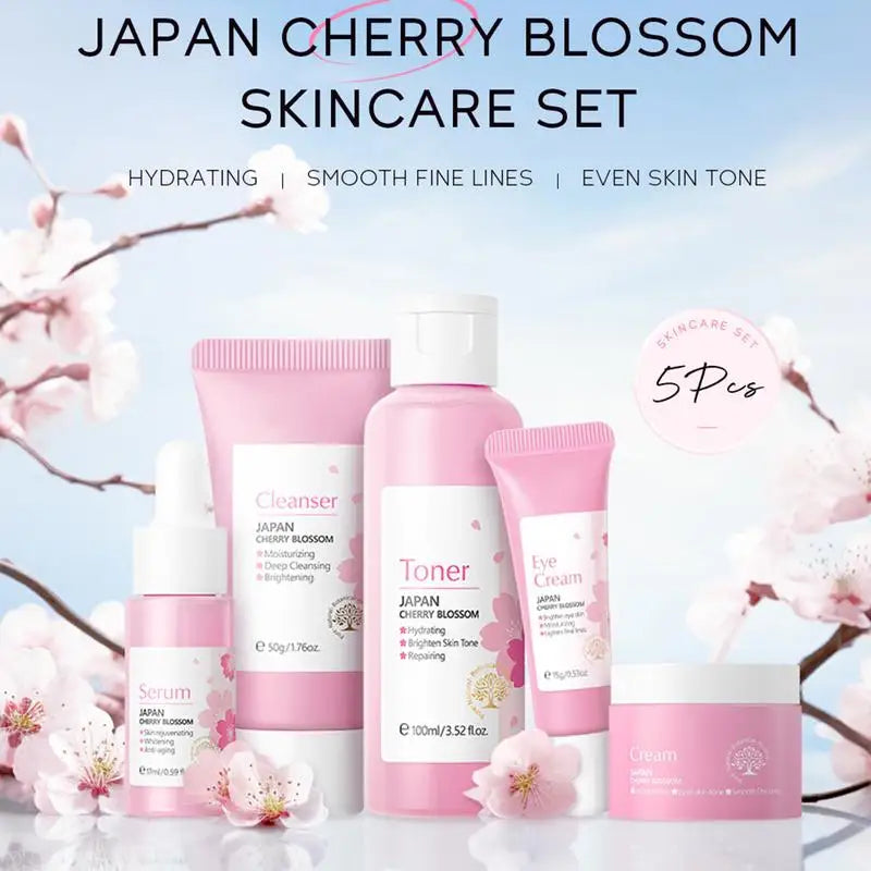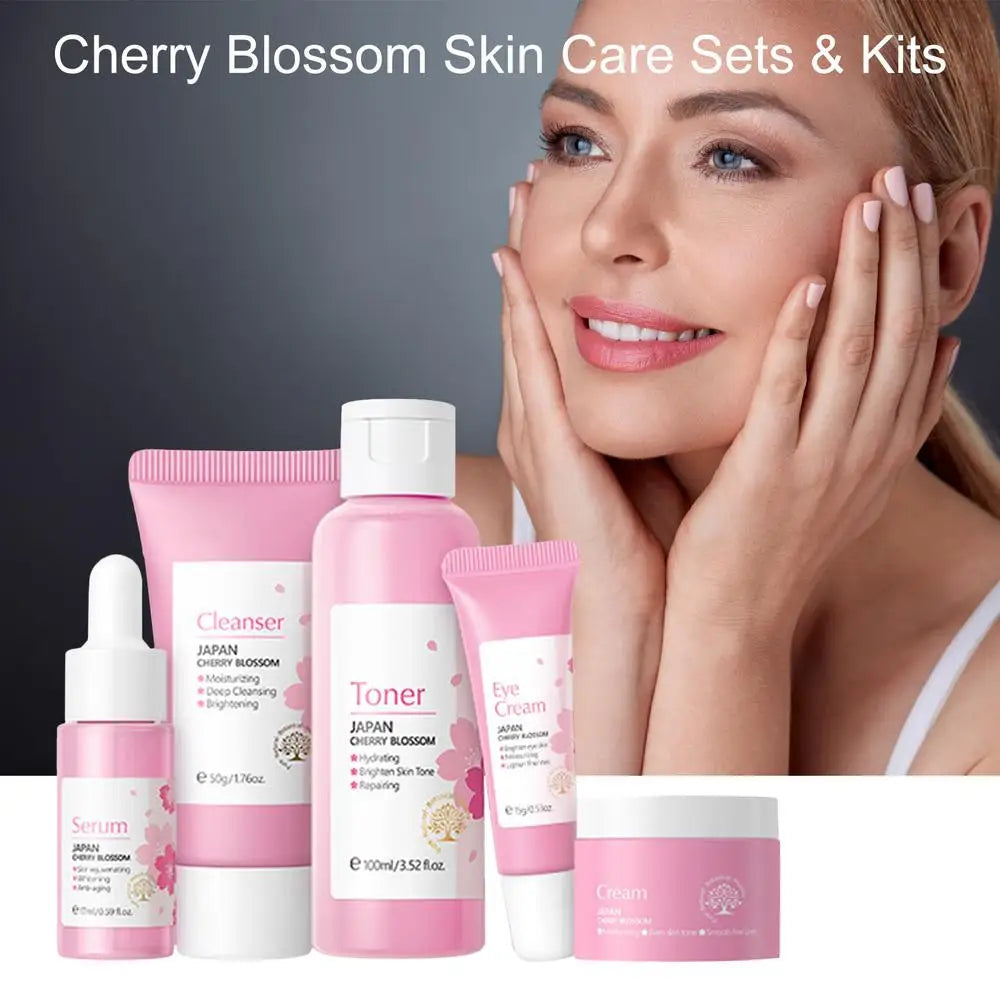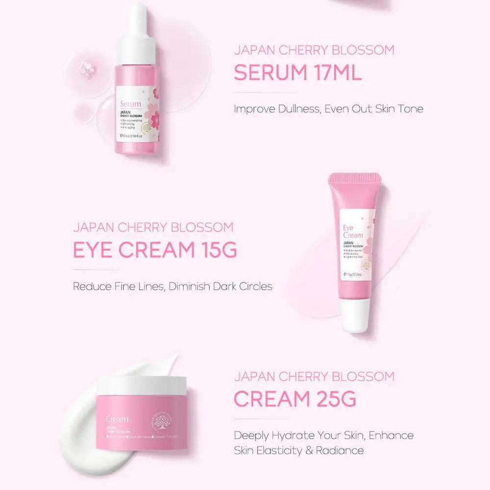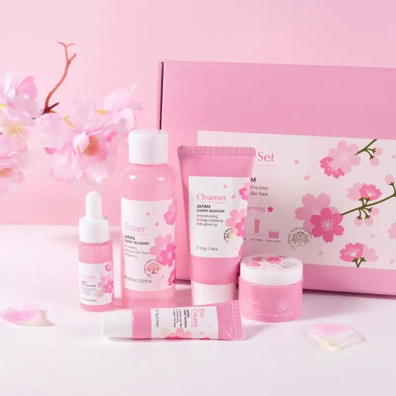 5pcs Japan Sakura Essence Face Cream Cherry Blossom Facial Cream Moisturizing Anti Wrinkle Anti Aging Korean Skin Care set