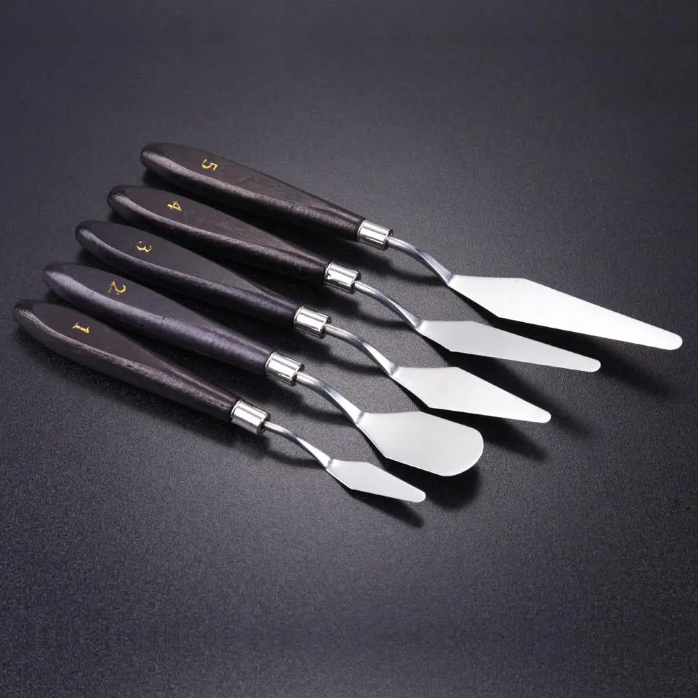 5pcs Painting Knife Spatula Palette Stainless Steel Arts Drawing Blades Kits Gouache Paint Craft Supplies for Artist Canvas