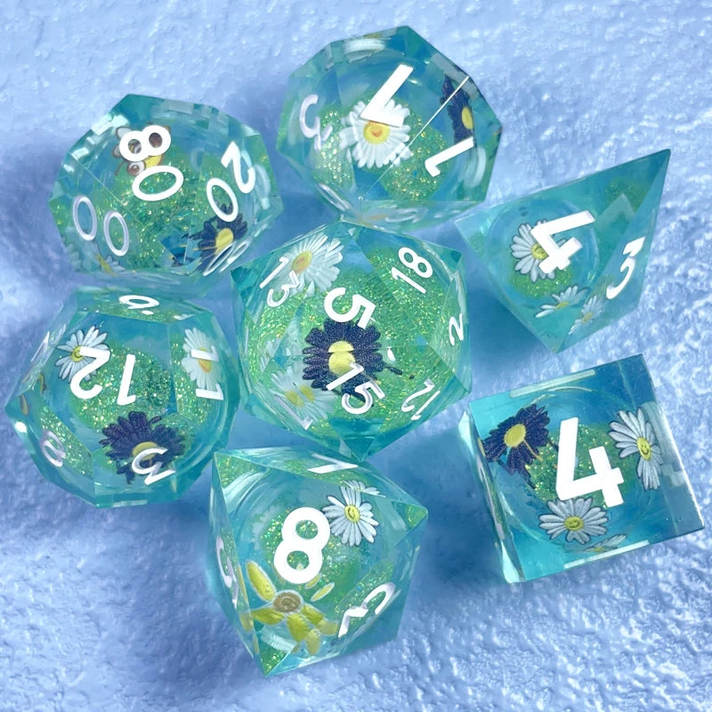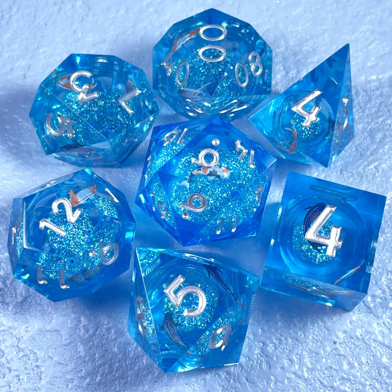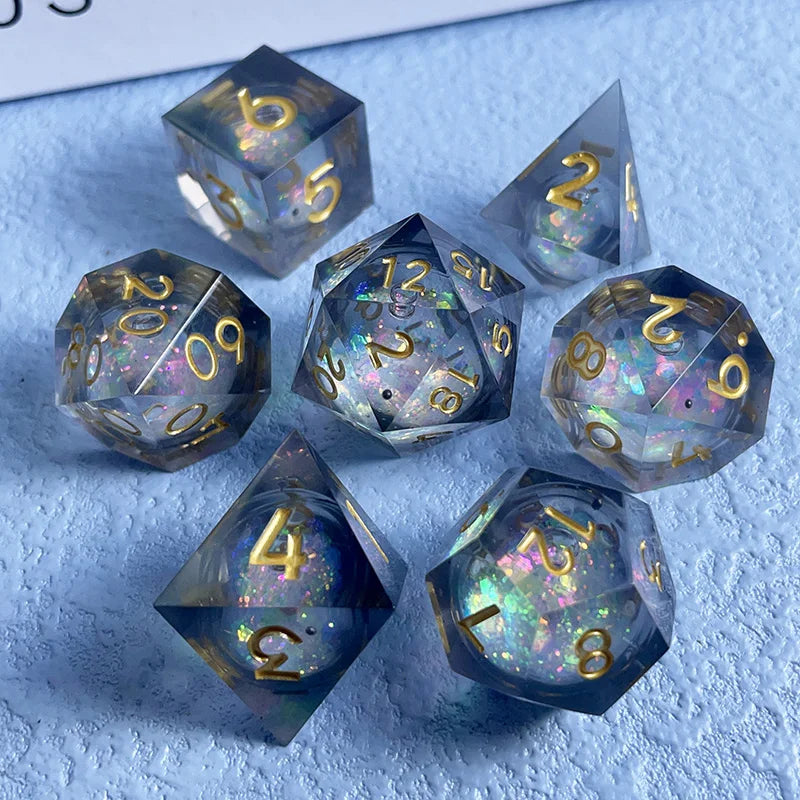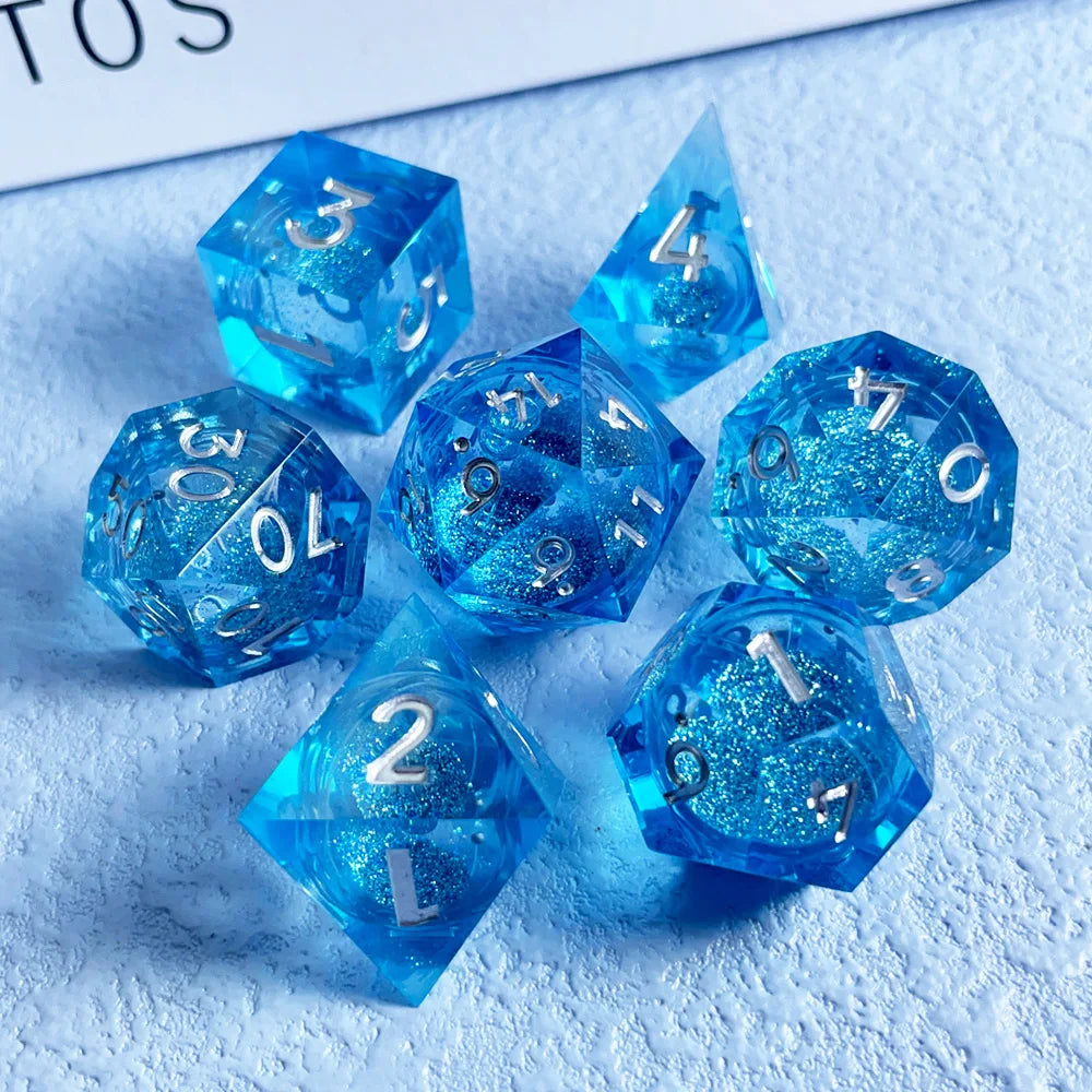 7PCS DND D20 Liquid Core Flow Eye Dice Sets for COC Dungeon and Dragon Pathfinder RPG Role Playing Games Party Toys Accessories