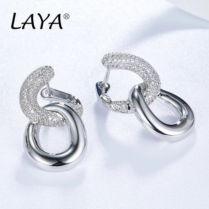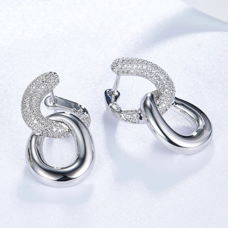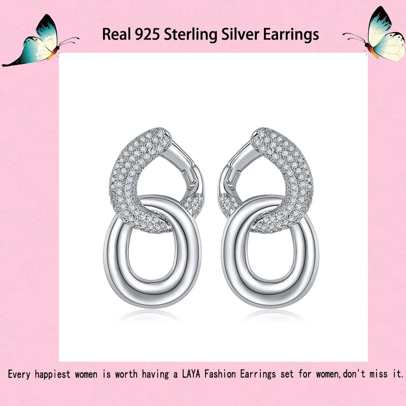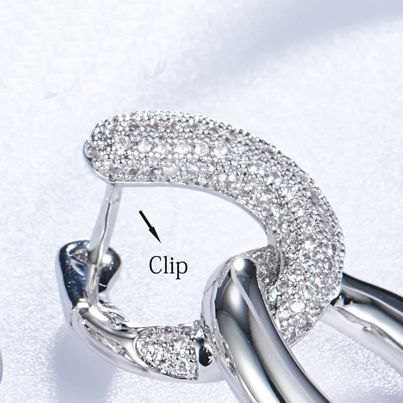 925 Sterling Silver Luxury Clear Cubic Zircon Chain Drop Earrings Women Girls Engagement Party Fashion Jewelry Gift