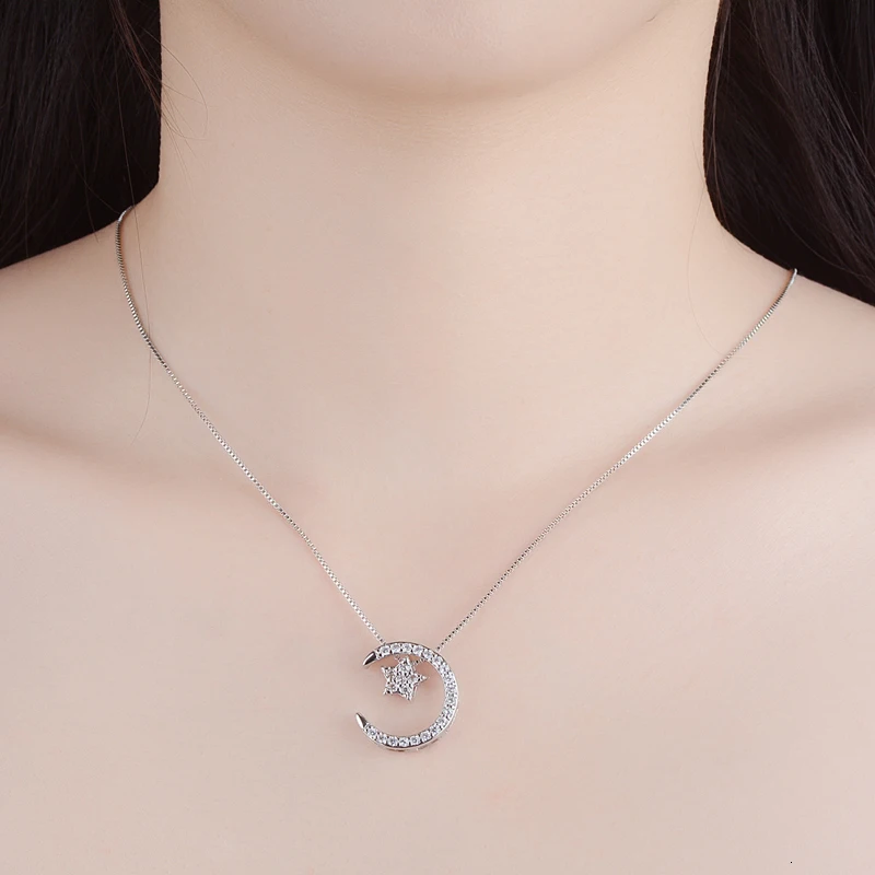 925 Sterling Silver Moon Star Pendant Necklaces With Austrian Crystal For Women 4 Ways To Wear Necklace Gifts Sn06