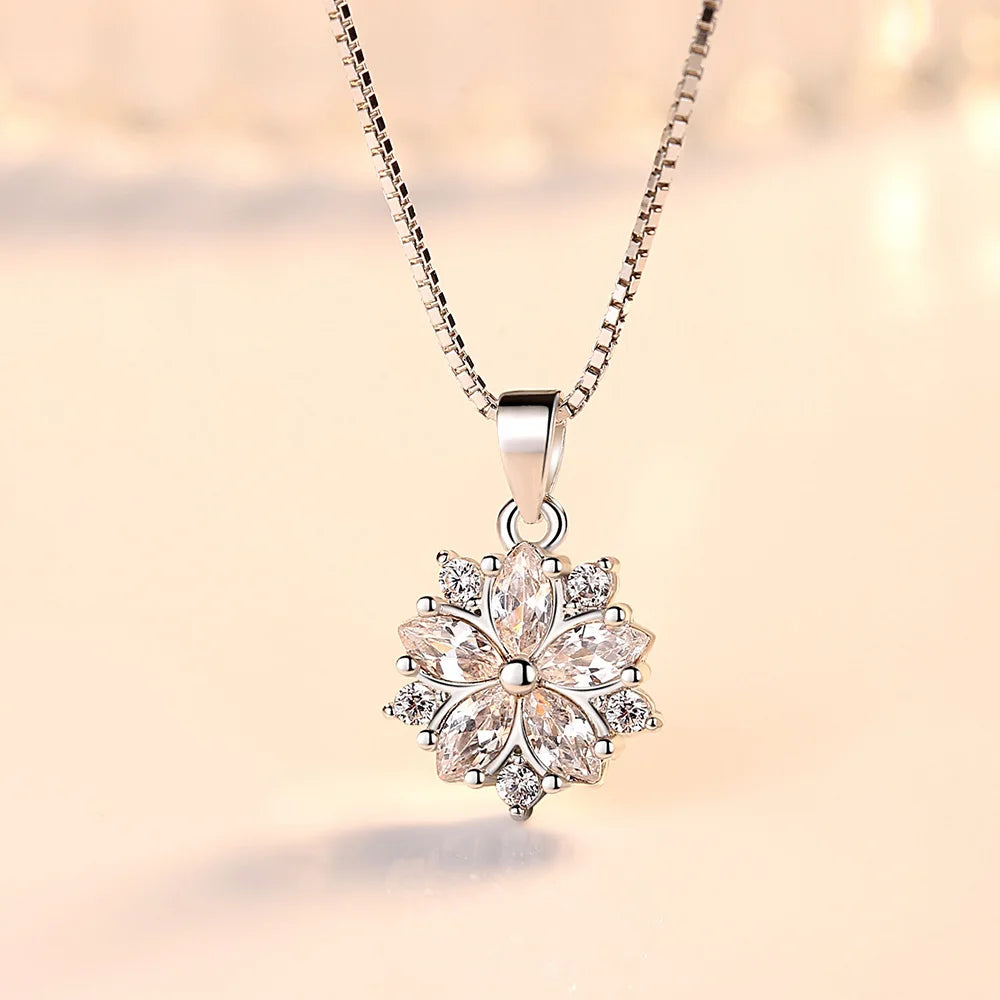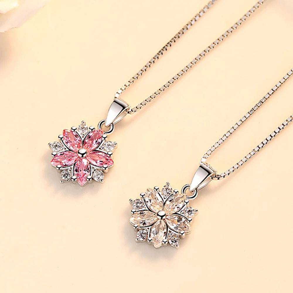 925 Sterling Silver Necklace For Women Pink Crystal Flower Pendant Korean Fashion Chain Designer Luxury Quality Jewelry GaaBou