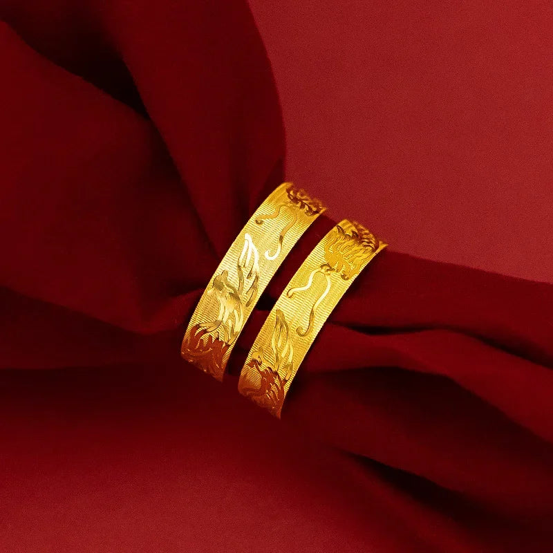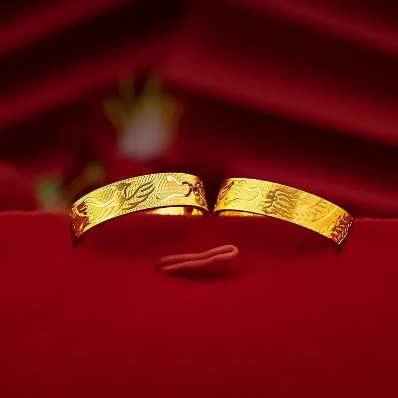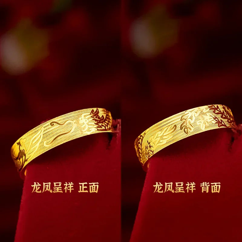 9999 real gold 24K yellow gold Ring Women and Men's Dragon and Phoenix Wedding Ring