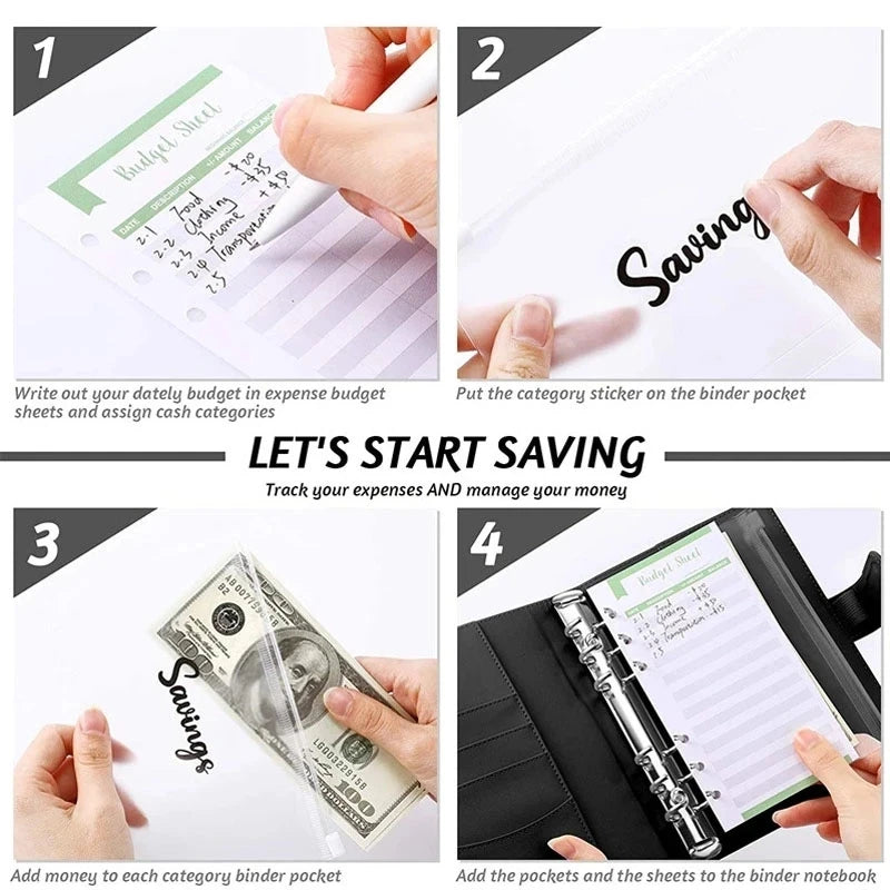 A7 PU Leather Budget Binder Notebook Good Material Cash Envelopes System Set Binder Pockets Money Budget Saving Bill Organizer