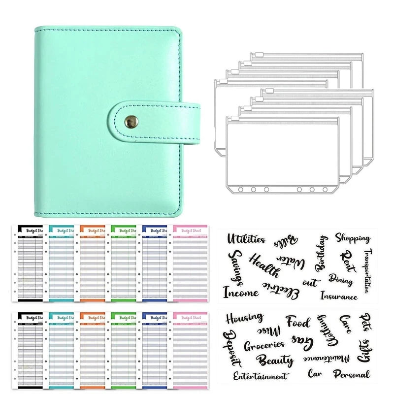 A7 PU Leather Notebook Binder Budget Plan Organizer Binder Cover 6 Binder Pockets And 12 Pcs Expense Budget Sheets Sticker