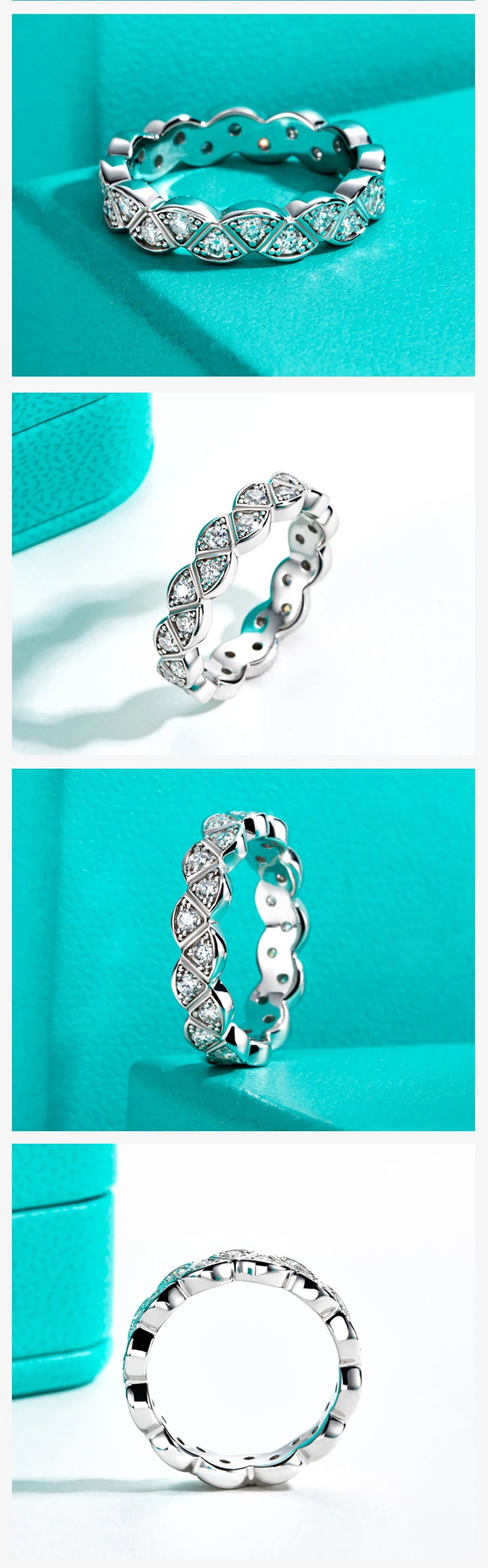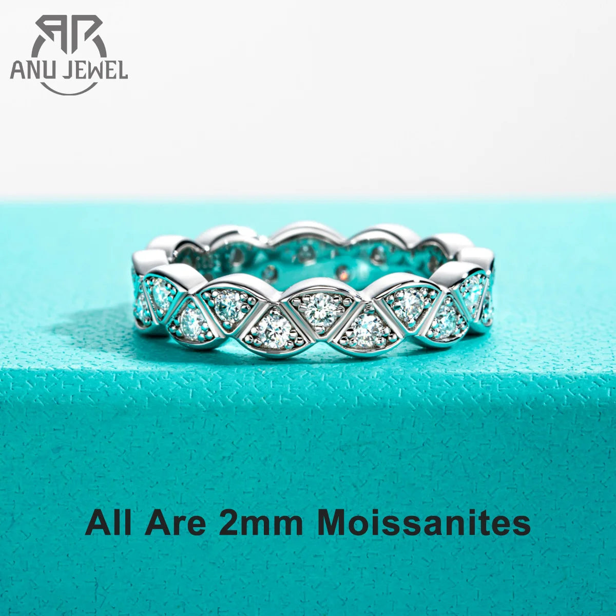 AnuJewel Moissanite Wedding Band Leaf Rings D Color VVS1 925 Sterling Silver Lab Created Diamond Eternity Bezel Ring Jewelry