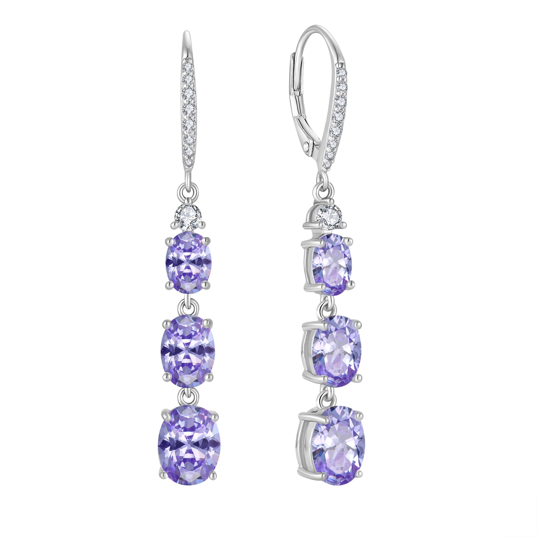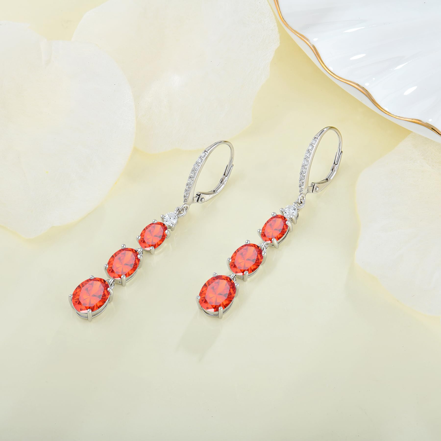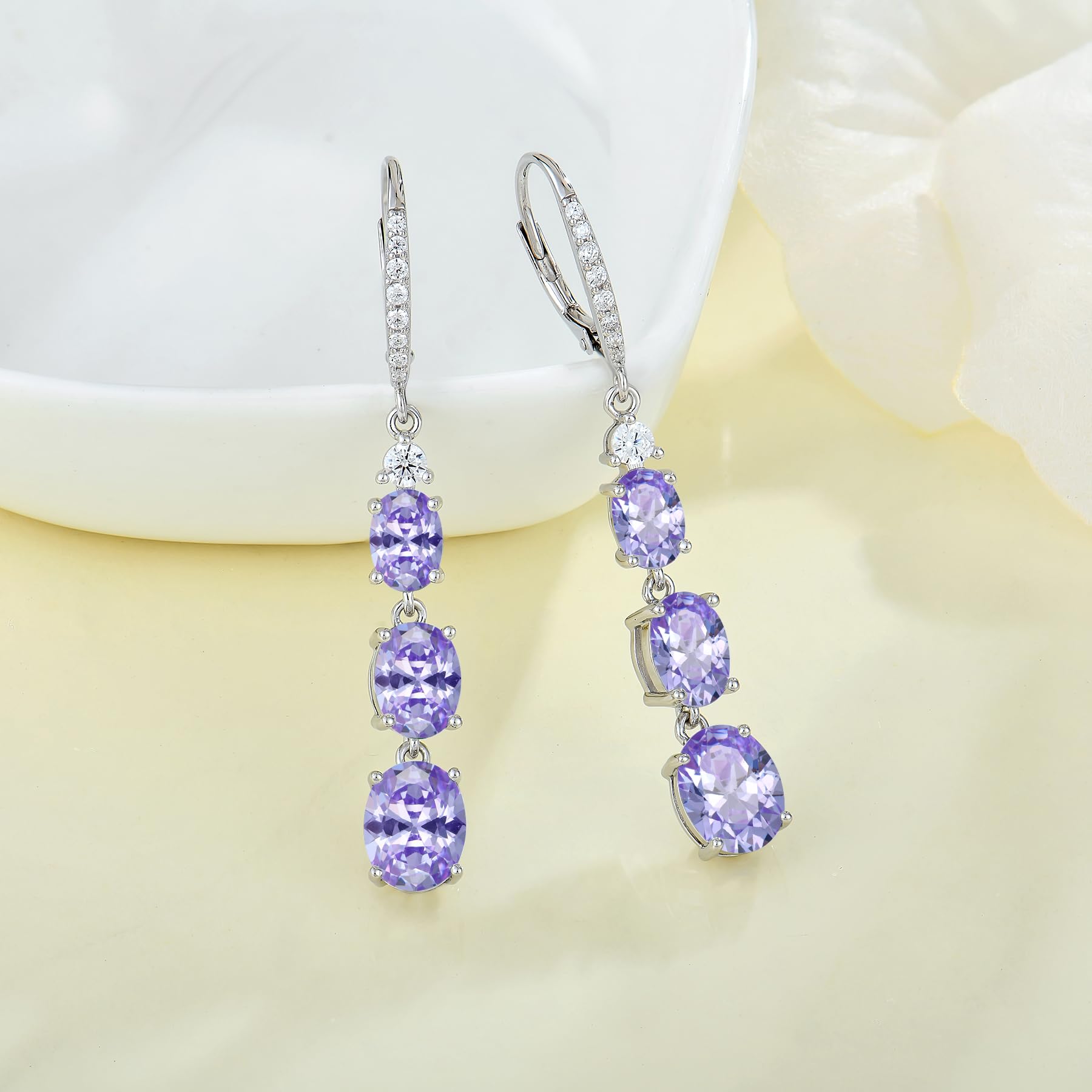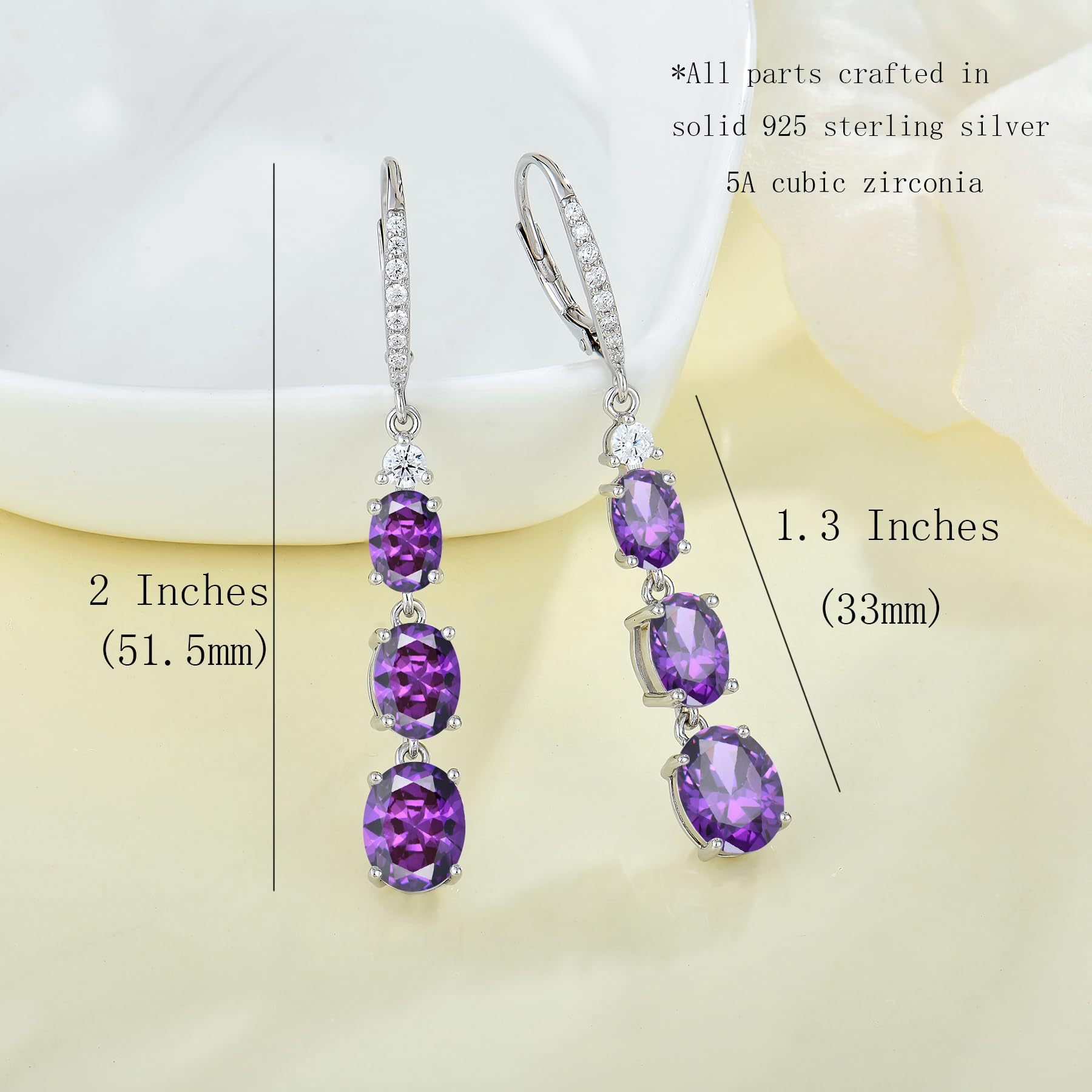 Aprila Women 925 Sterling Silver Birthstone 3-stone Leverback Drop Dangle Earrings with 5A Cubic Zirconia Jewelry for Her