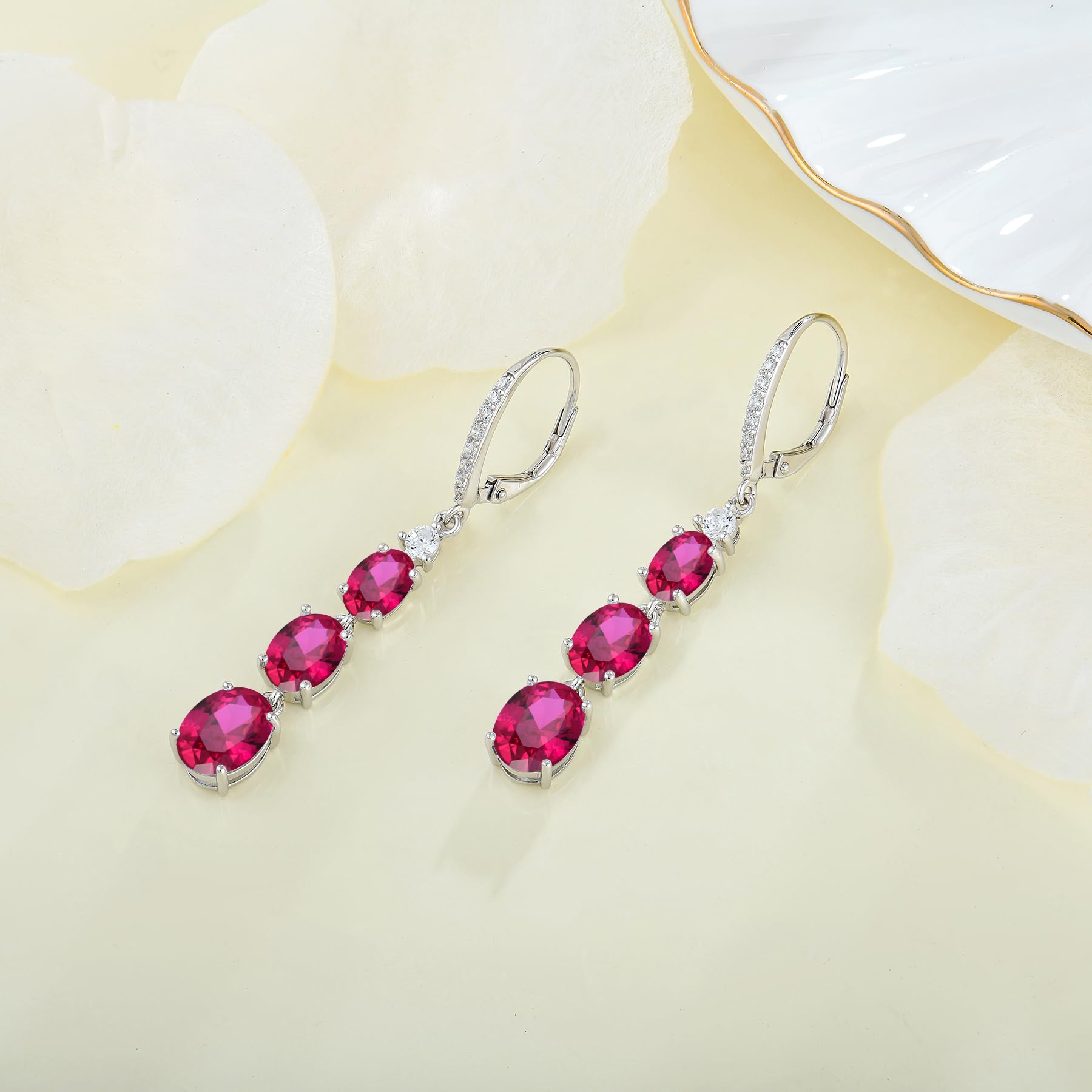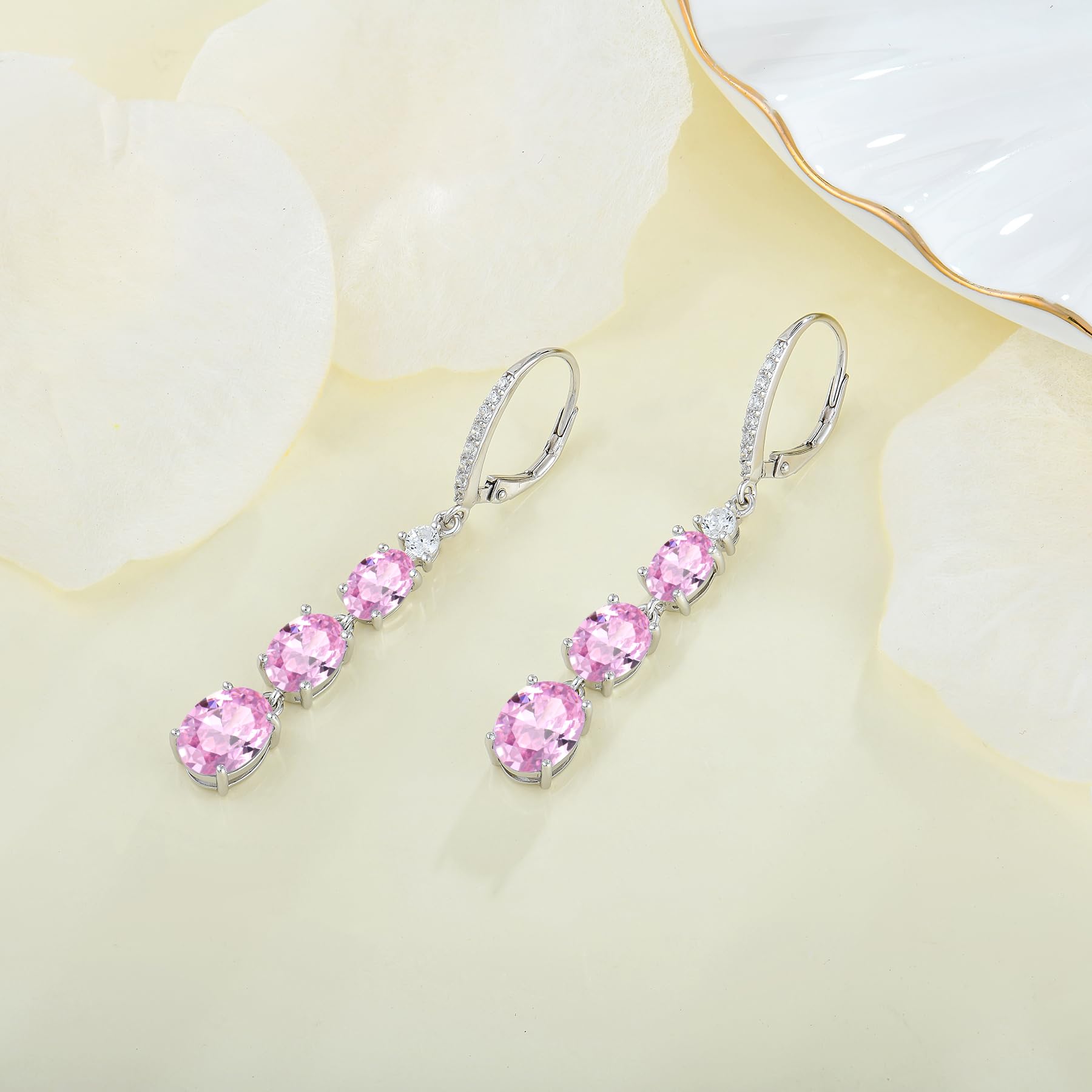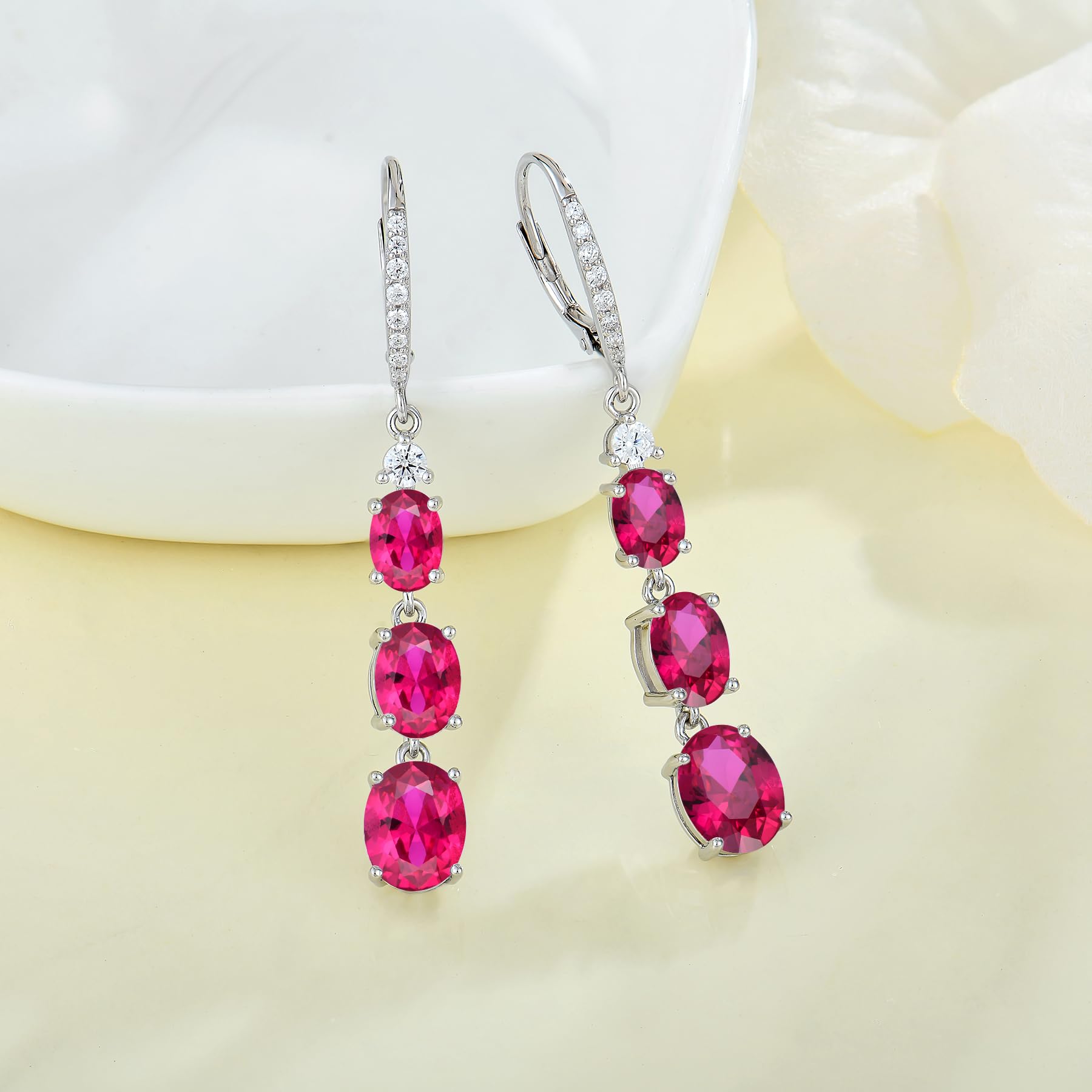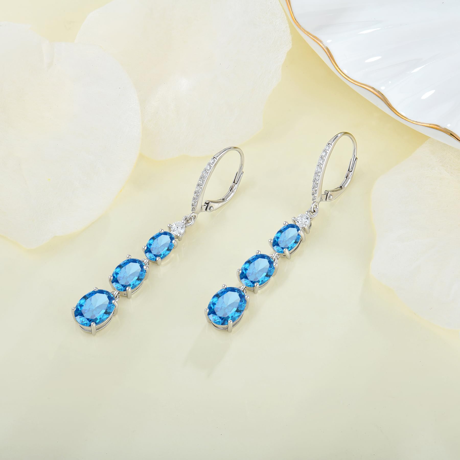 Aprila Women 925 Sterling Silver Birthstone 3-stone Leverback Drop Dangle Earrings with 5A Cubic Zirconia Jewelry for Her