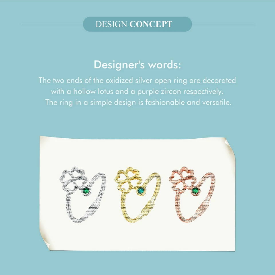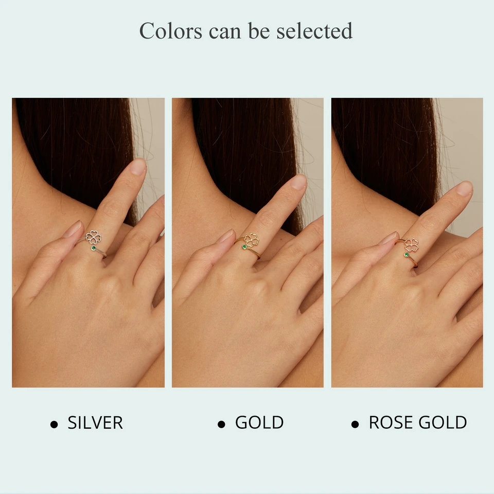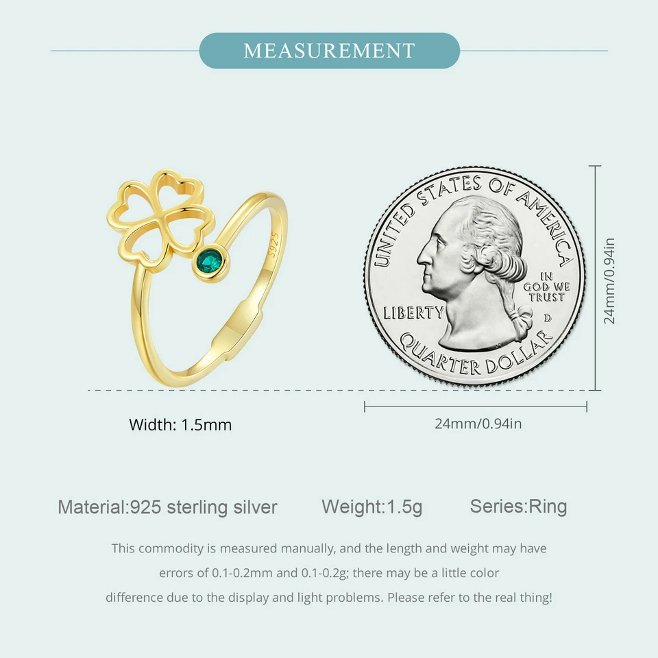 ❤ [Description] The oxidized silver open ring are decorated with a hollow four-leaf clover and a green zircon; the back is decorated with a Lucky plate. It can be worn on both sides and add a stylish touch to your outfit.