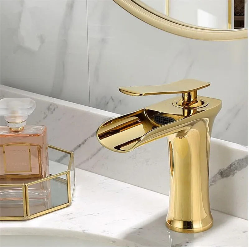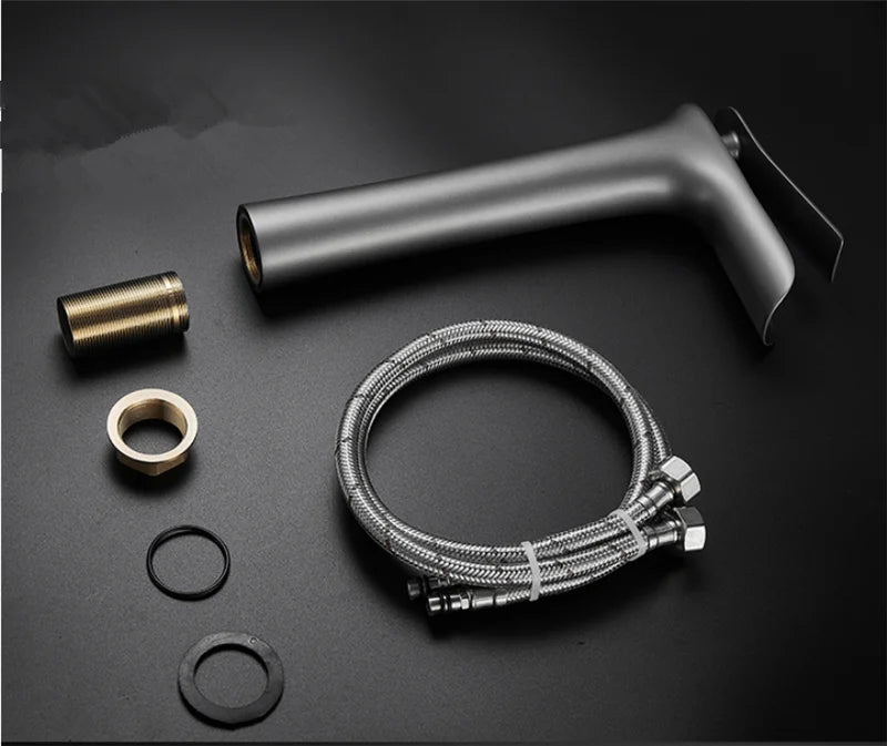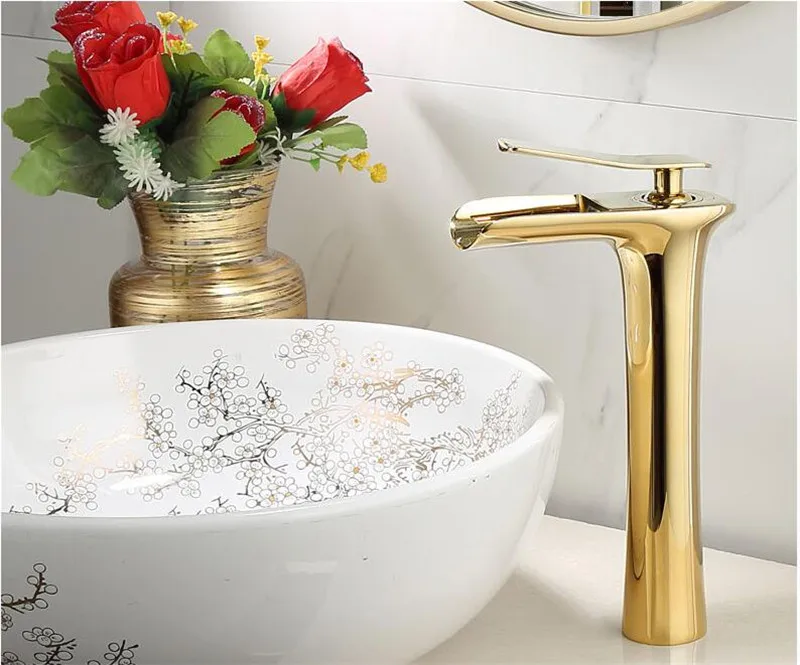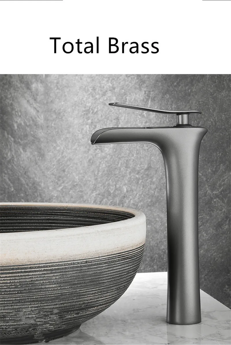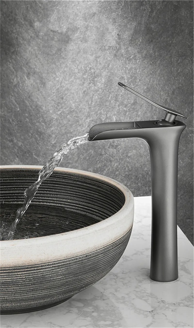 Basin Faucet Grey Waterfall Faucet Brass Bathroom Faucet Gold Bathroom Basin Faucet Mixer Tap Hot and Cold White Sink faucet