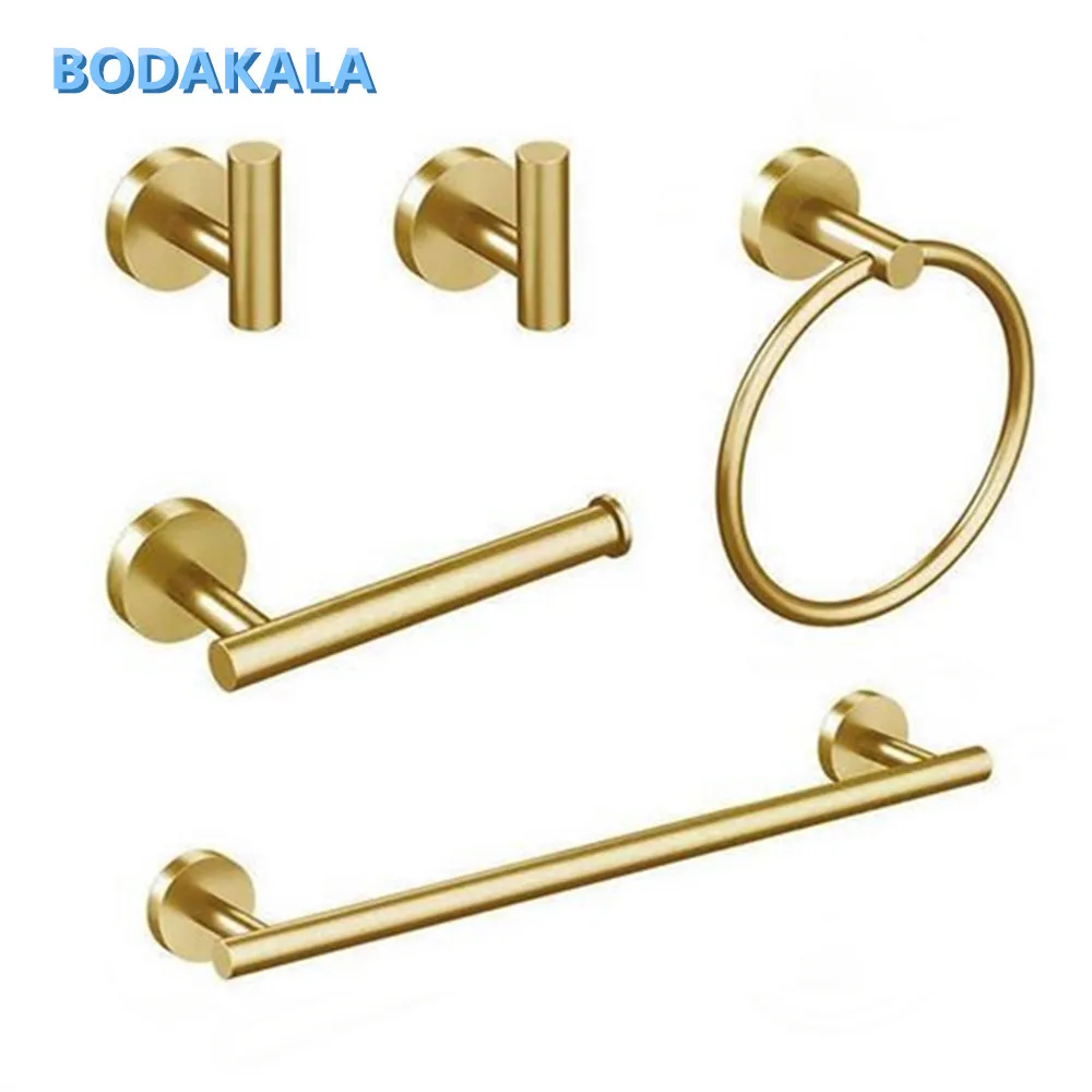 Bathroom Hardware Set Accessories Gold Shelf Robe Hook Hanger Towel Rail Bar Rack Tissue Paper Holder Stainless Steel