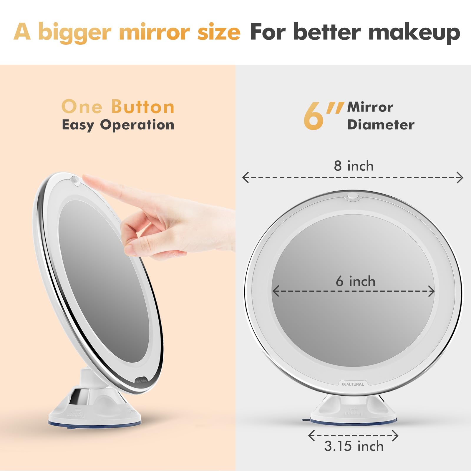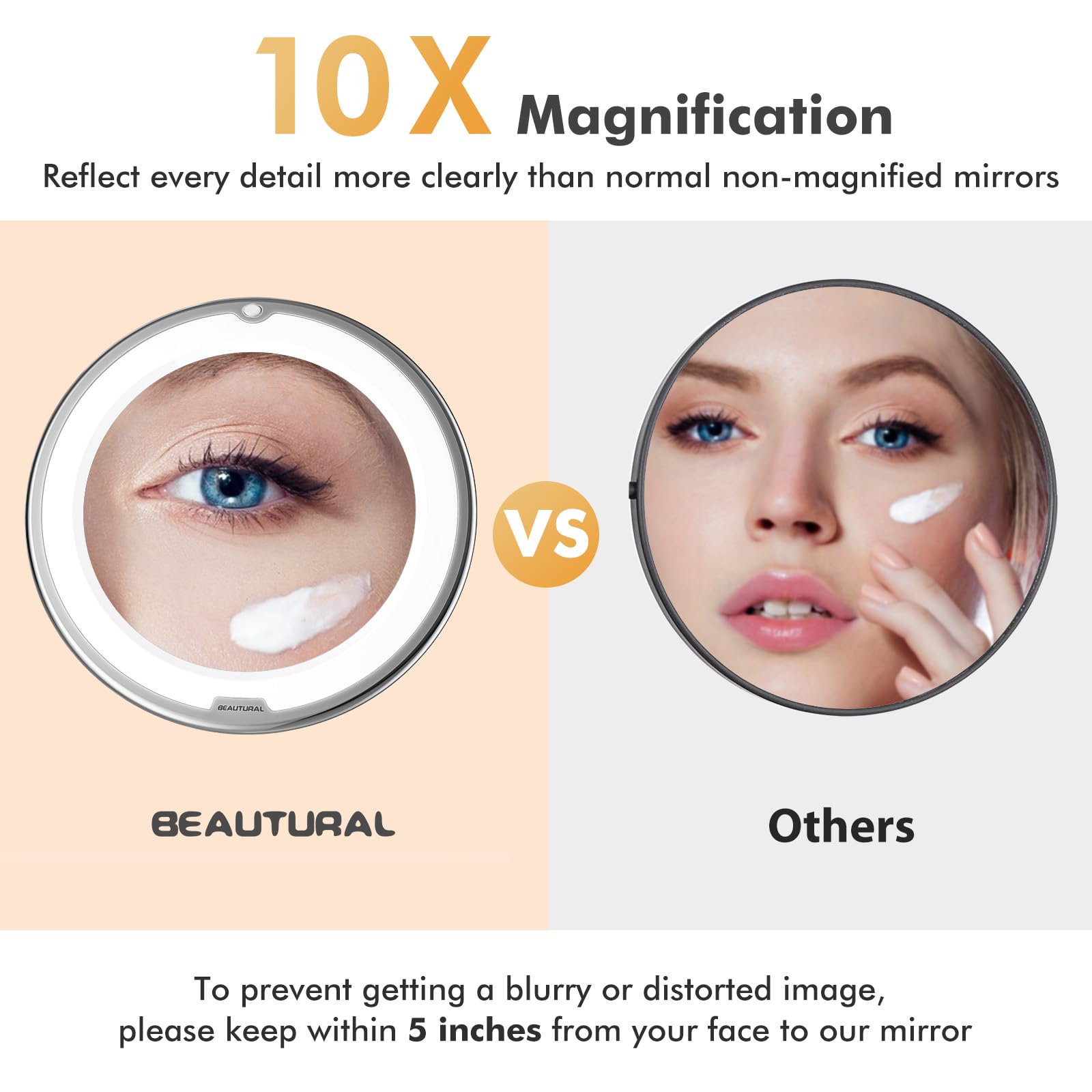 BEAUTURAL 10X Magnifying Makeup Mirror with LED, Lighted Magnifying Vanity Makeup Mirror for Home Tabletop Bathroom Shower Travel, 360 Degree Rotation, Powerful Suction Cup