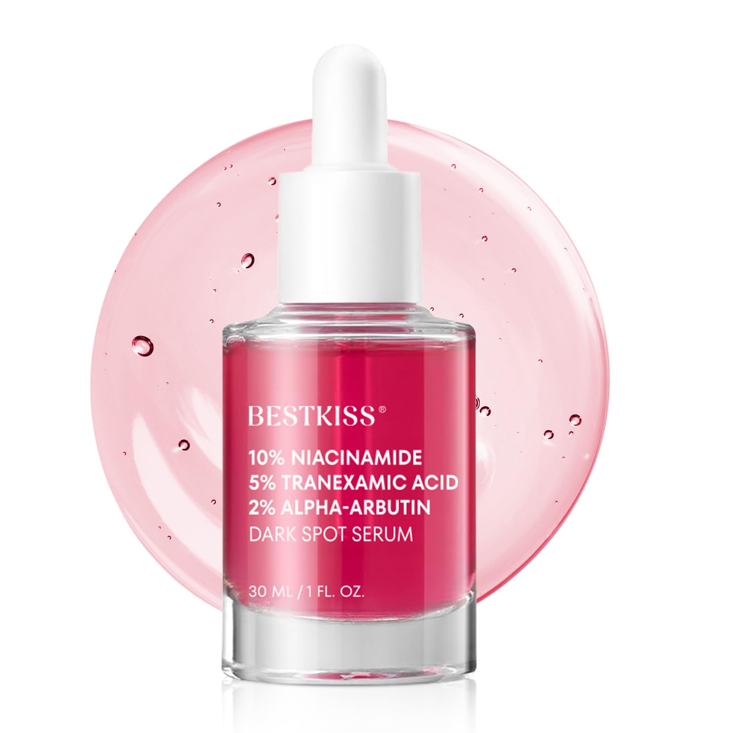 - Introducing Bestkiss Niacinamide Serum for Face: expertly formulated with 10% Niacinamide + 5% Tranexamic Acid + 2% Alpha-Arbutin, a powerful trio of ingredients to target dull skin, enlarged pores, dark spots, age spots, brown spots, sun spots for face and body. Infused with Ceramides and Hyaluronic Acid to protect damaged skin barrier, soothe and hydrate the skin. Bestkiss dark spot correcting glow serum is gentle enough to be used daily, morning and night. Achieve radiant Korea Glass Skin with Bestkiss!