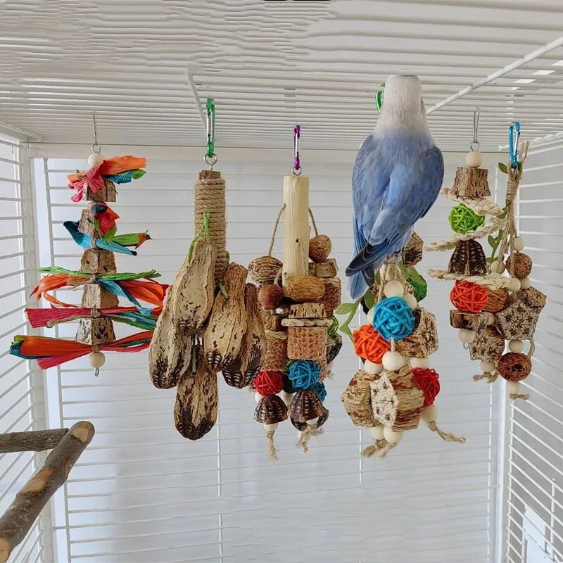 Wooden Birds Parrot Colorful Chew Toys Natural Bite Hanging Cage Balls Ropes Garden Ornament Pet Supplies