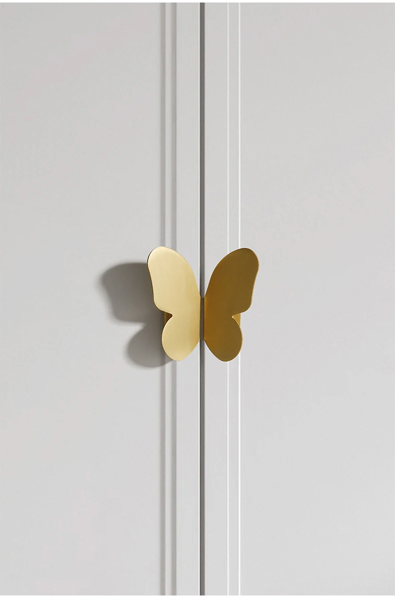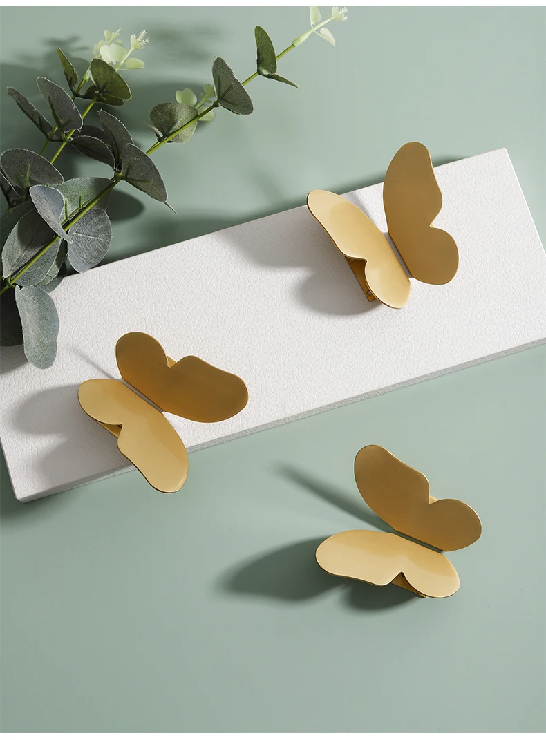 Brass Butterfly Furniture Handles Gold Ins Wind Insect Design Bedroom Wardrobe Children's Room Pulls Cabinet Drawer Dresser Knob