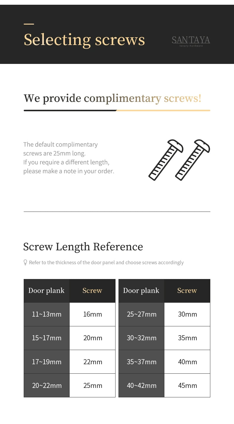 Screw:Default 25mm(If you need other lengths, please consult online customer service for screw length selection)
