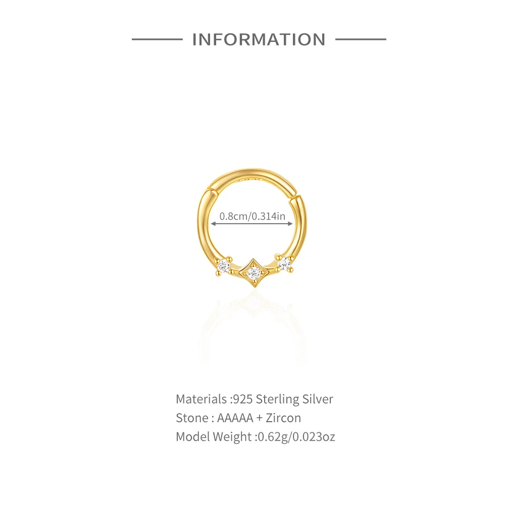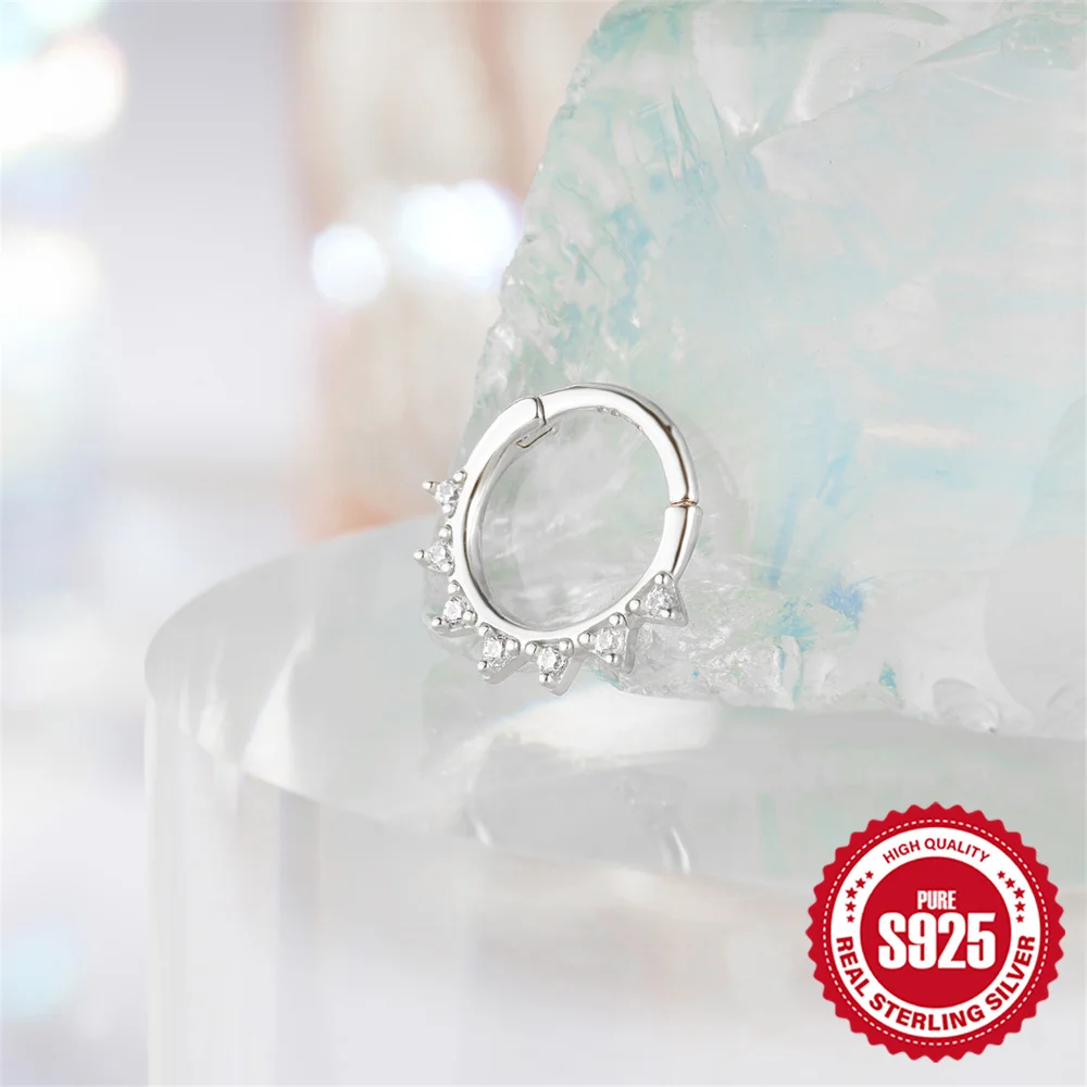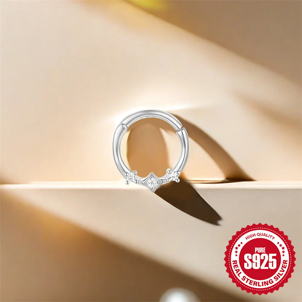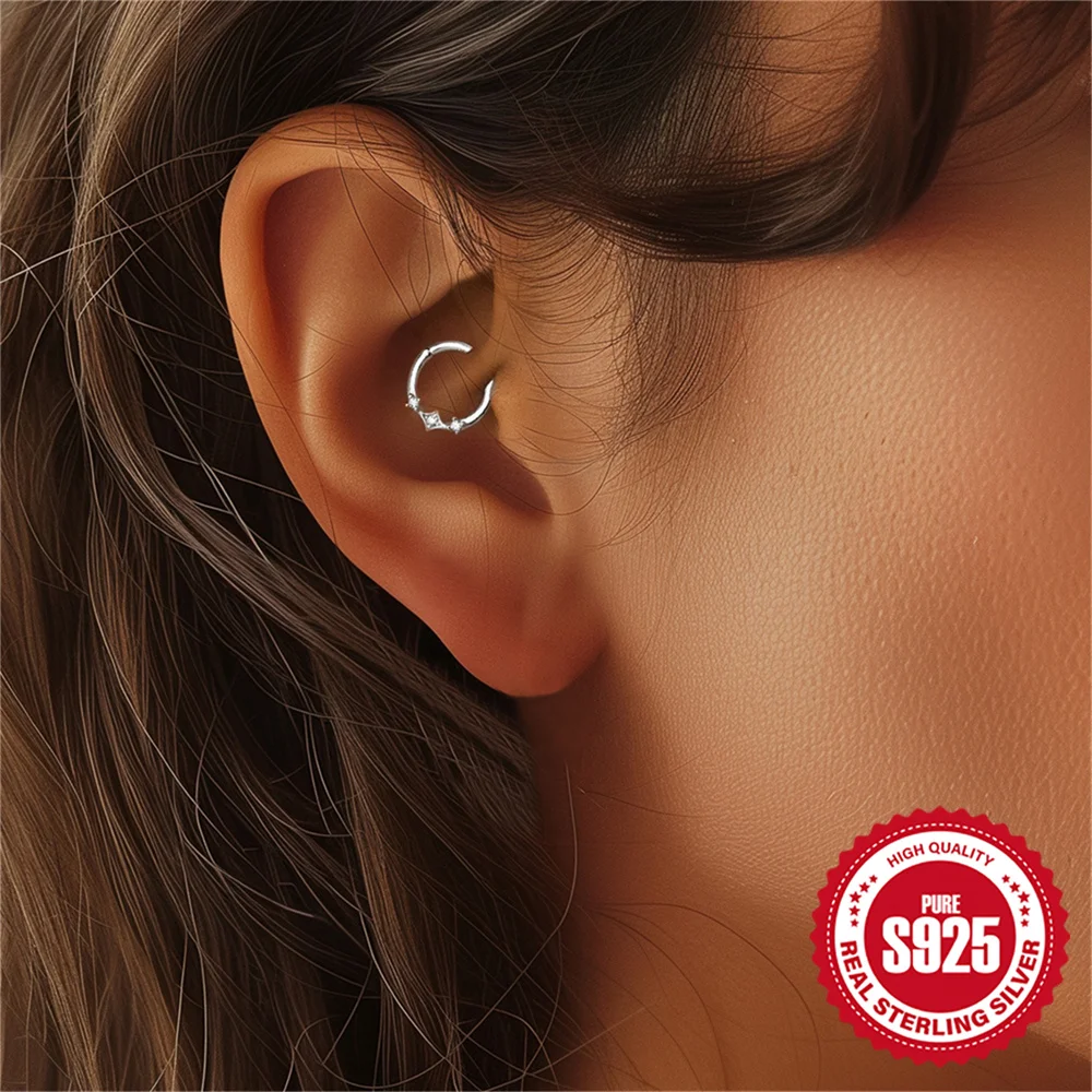 CANNER 1PC 925 Sterling Silver Triangle Zircon Cartilage Piercing Hoop Earring For Women's 18k Gold Minimalism Fine Jewelry Gift