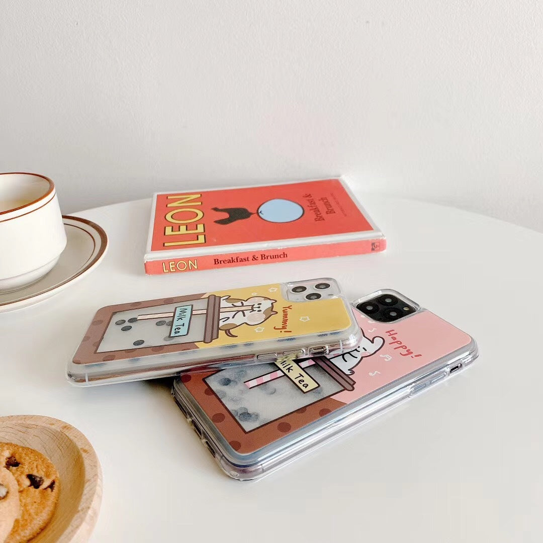 Cartoon Cute Rabbit Pearl Milk Tea Quicksand Mobile Phone Case Transparent Soft Shell Female