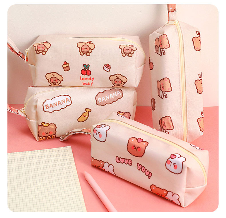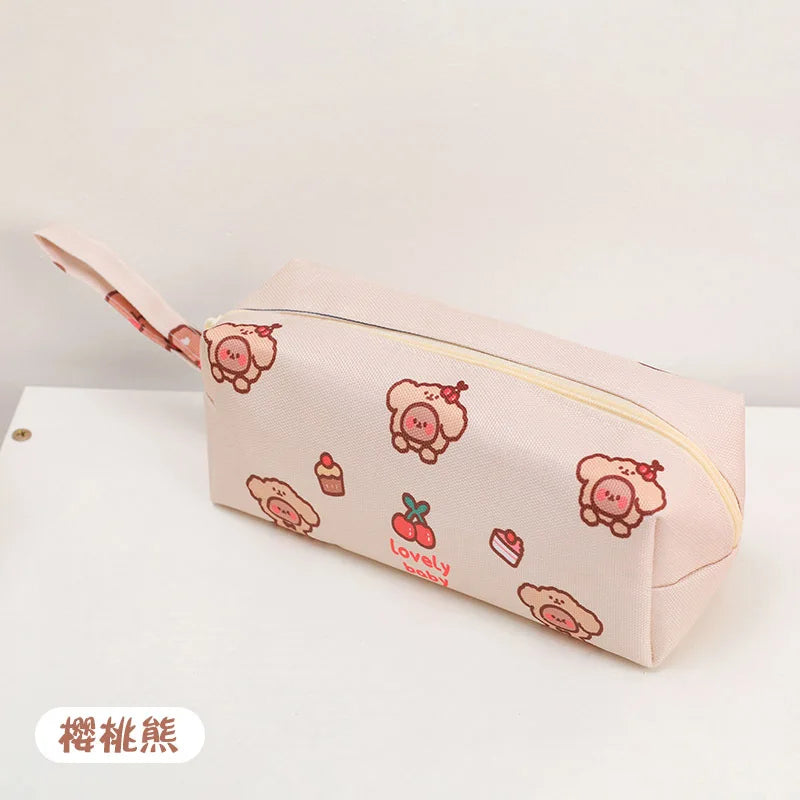 Cartoon Little Bear Canvas Pencil Case Student Ins Girl Heart Large Capacity Pencil Case Desktop Stationery