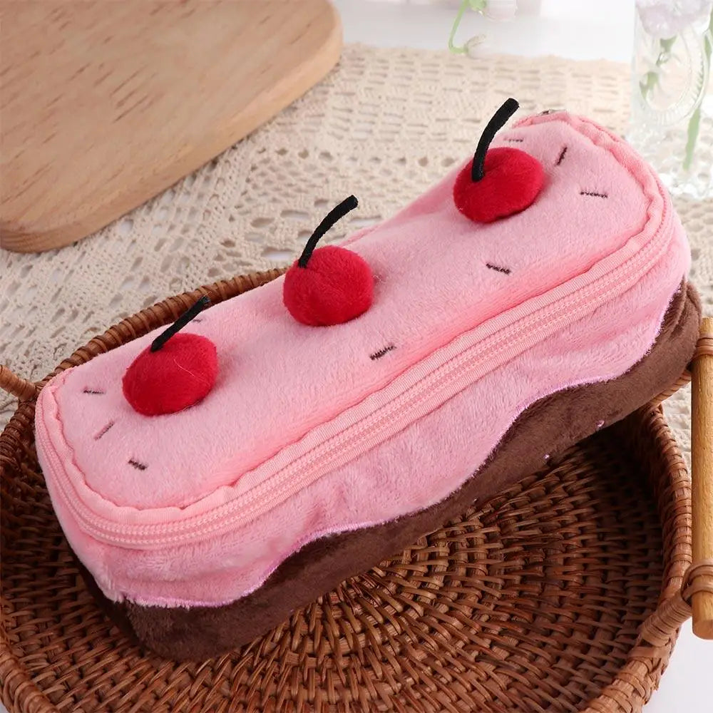 Cherry Cake Plush Pen Bag Cosmetic Bags Large Capacity Stationery Bag Exquisite Kawaii Pencil Pouch Stationery Box