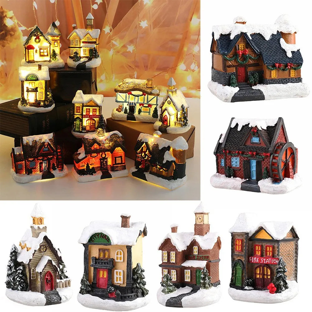 Christmas Pendant Drop Ornaments Brightness LED Light Up Small Village House Scene Christ Home Decoration Ornament Party Supplie
