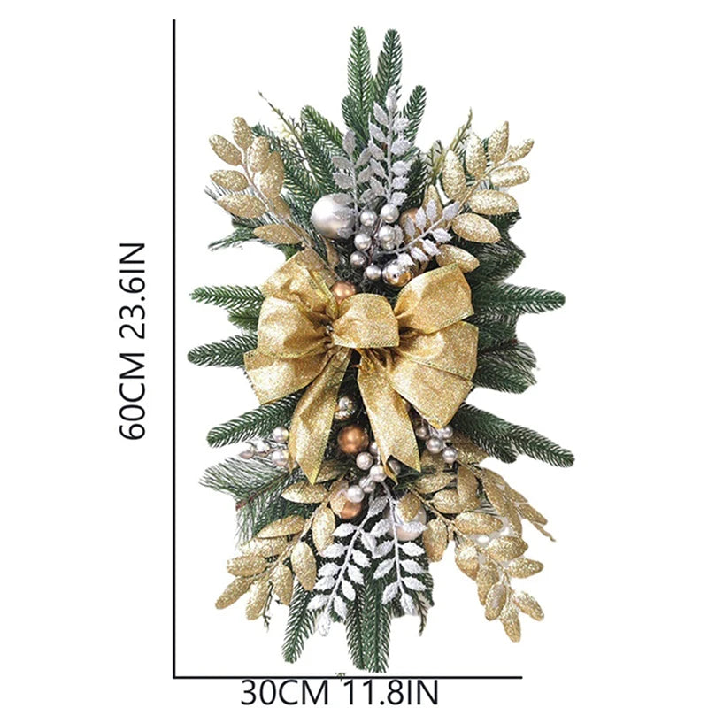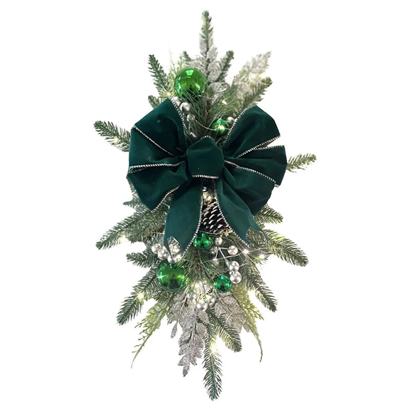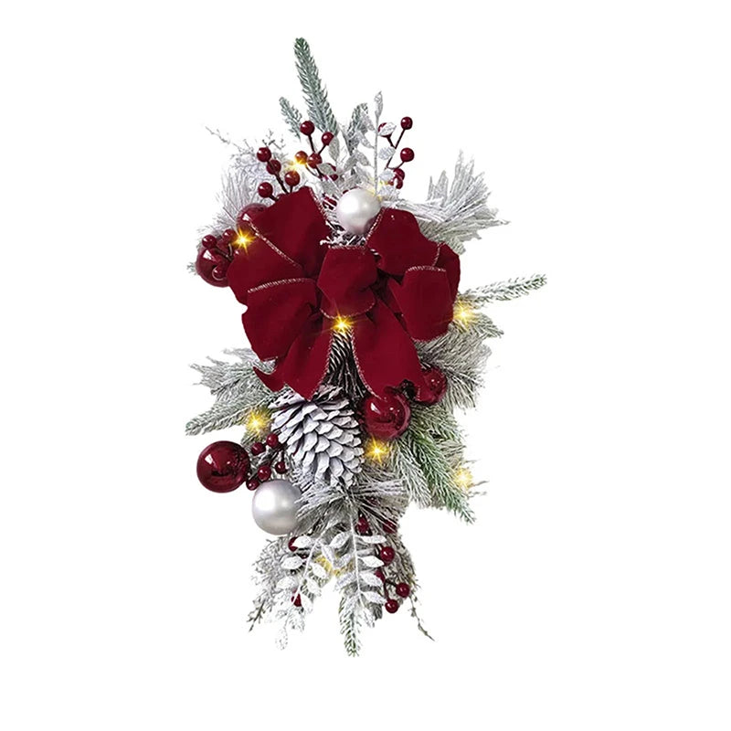 Christmas Swag Wreath Pendants LED Lights Staircase Wreath Ornament Swag Trim Garland Door Window Decoration Party Supplies