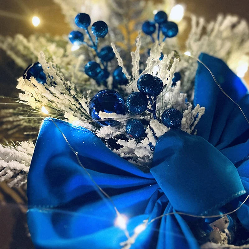 Features berries, colorful balls, bowknots, pine cones, and LED light strings for a festive and vibrant decoration.