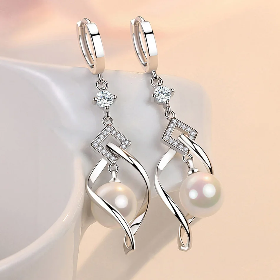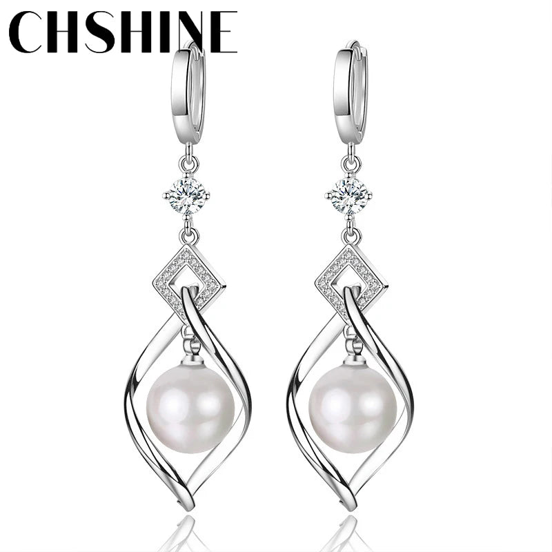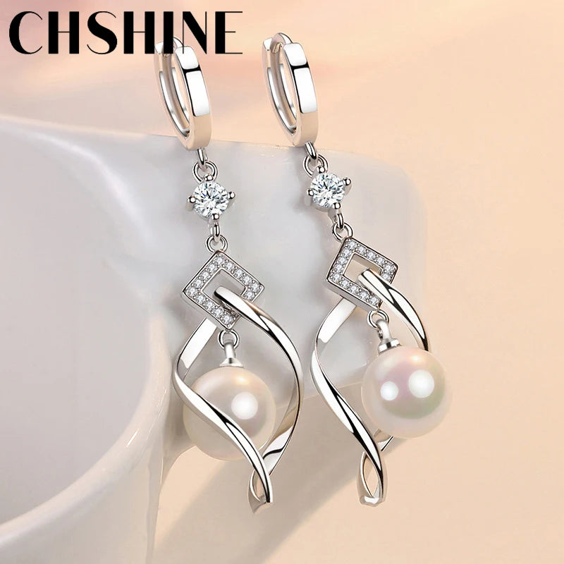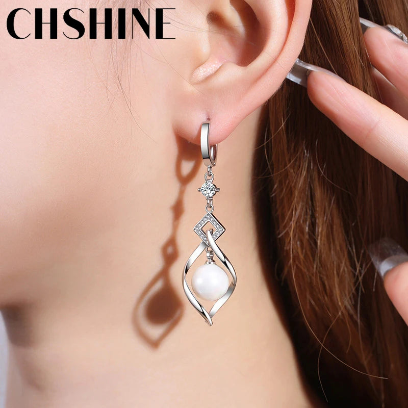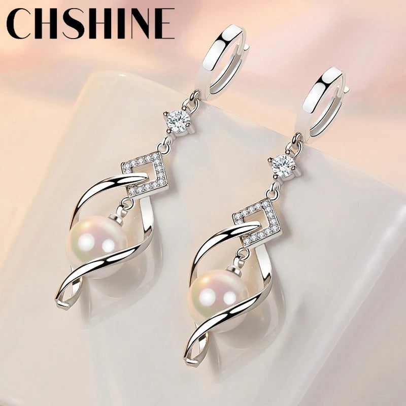 CHSHINE 925 Sterling Silver Natural Pearl Rotate Earrings for Women's Wedding Gift Fashion Jewelry