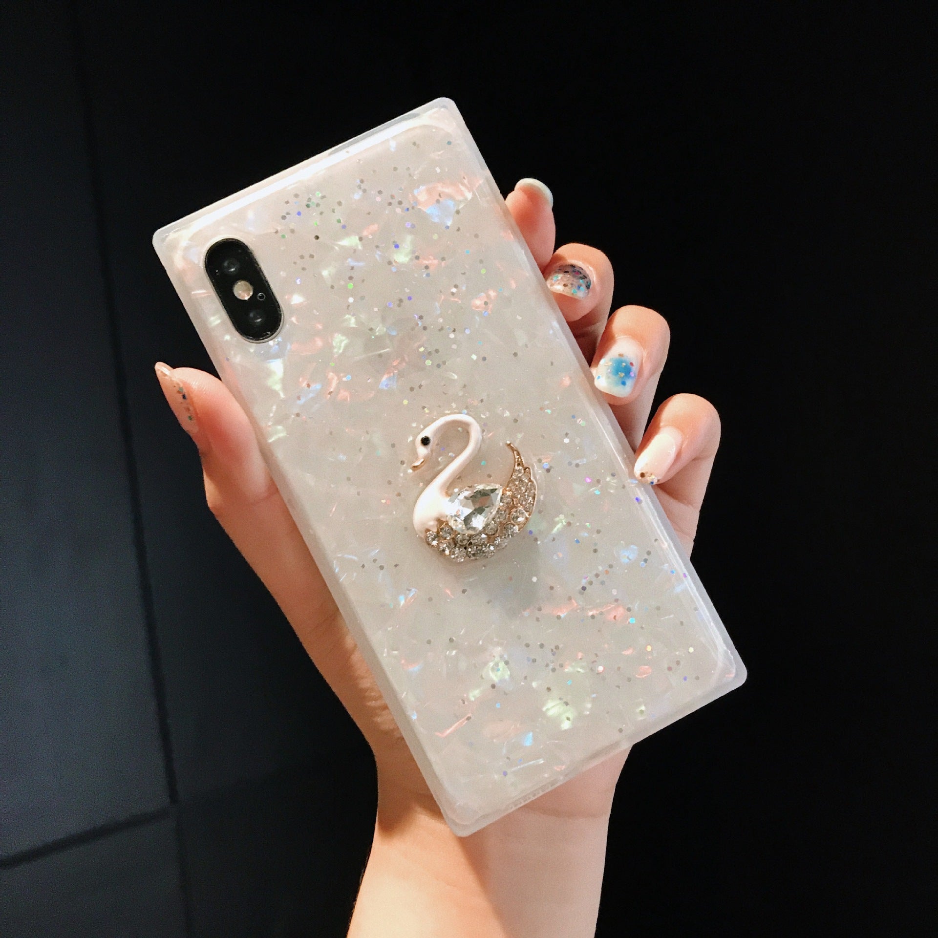 Compatible With Compatible With Square Shell Mobile Phone Shell Drop Glue Bee Stick Drill Fashion Personality Hard Shell