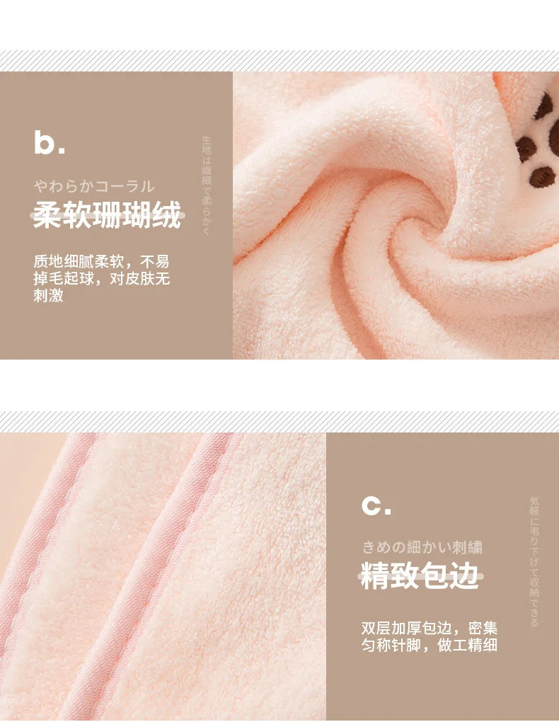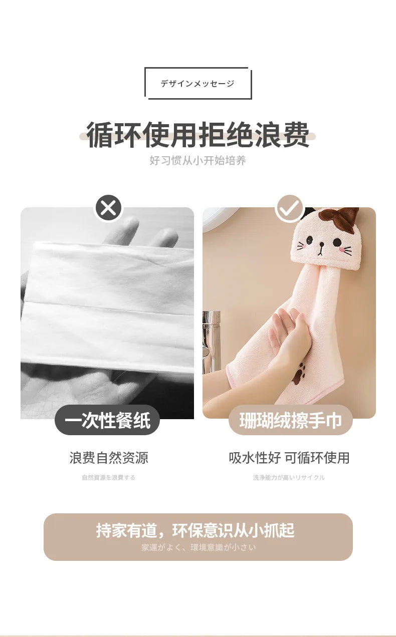 Coral Velvet Pocket Cat Embroidered Hand Towel Bathroom Hanging Absorbent Towel Kitchen Bathroom Square Towel
