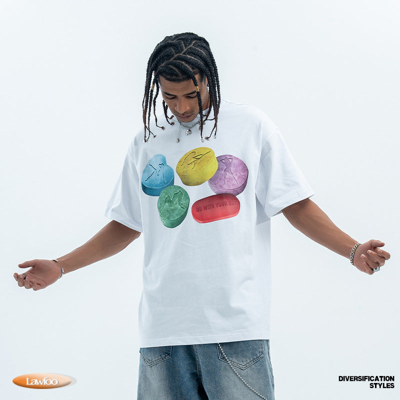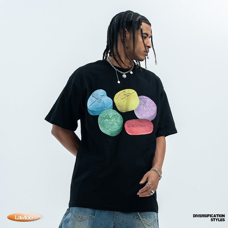 Cotton Printed Round Neck Couple Top T-shirt With Short Sleeves