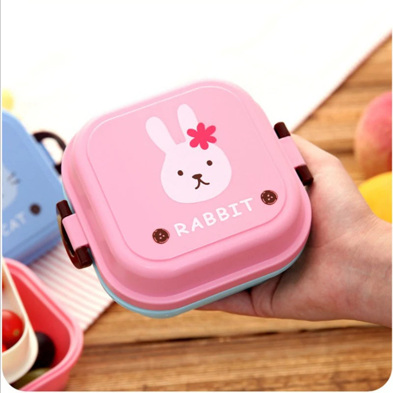 Cute Portable Colorful Cartoon Lunch Box Microwaveable Kids 2 Layer Food Fruit Container Picnic Outdoor Bento Box Child Gift