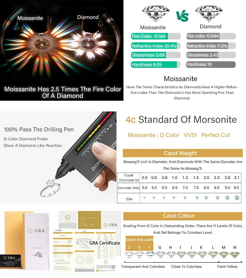 3. Moissanite stacks up in color, clarity and brilliance. The fire and brilliance of moissanite far exceeds that of diamond. As the best alternative of diamond.