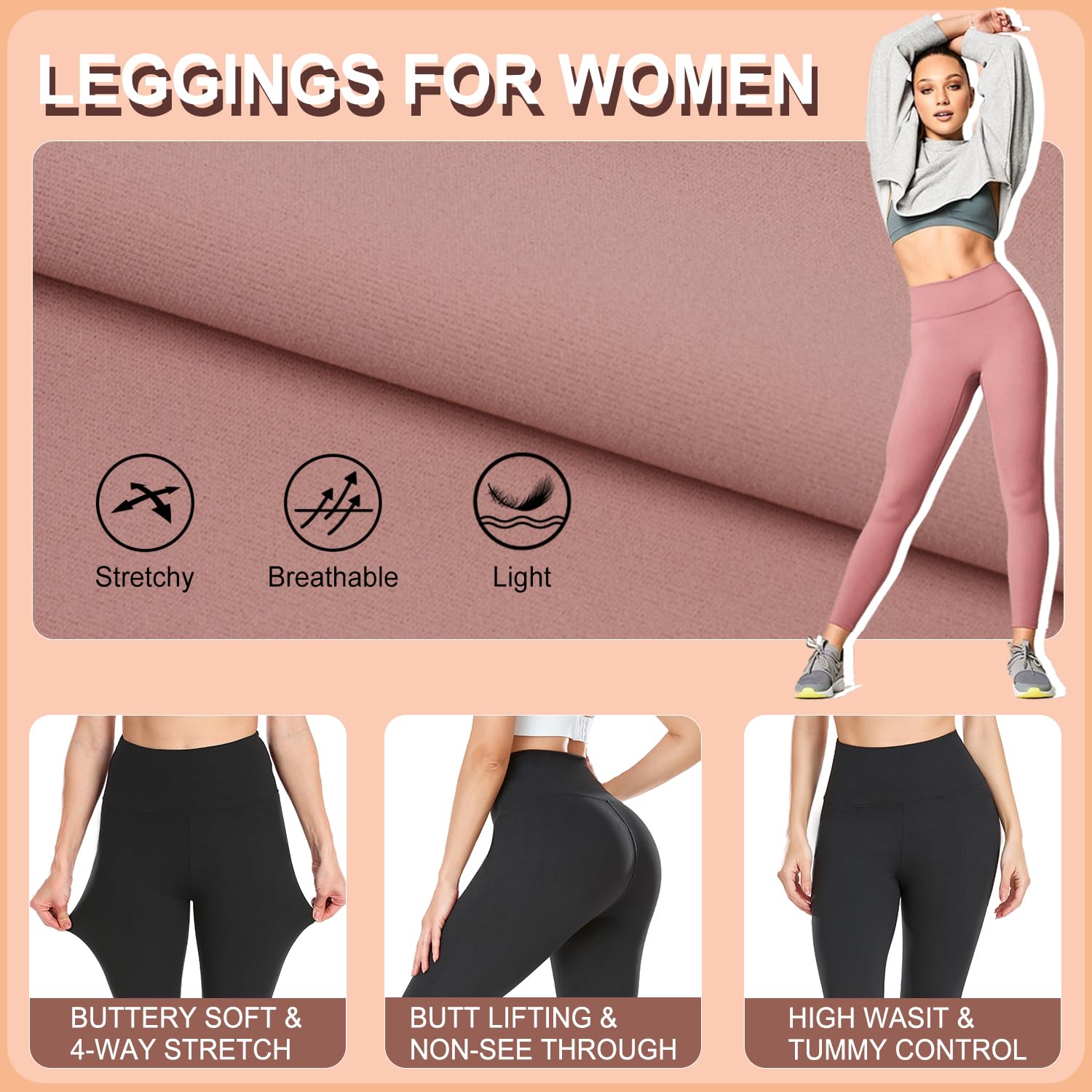 - 🆕【HIGH WAIST TUMMY CONTROL】 - Our high waisted leggings for women are an unbelievable tummy tamer. Elastic wide, high waistband and the soft fabric offers contouring and gentle compression that hugs your abdomen, and smooths all over. The high waisted style elongates the legs, and slims the waist, creating the silhouette of your dreams.