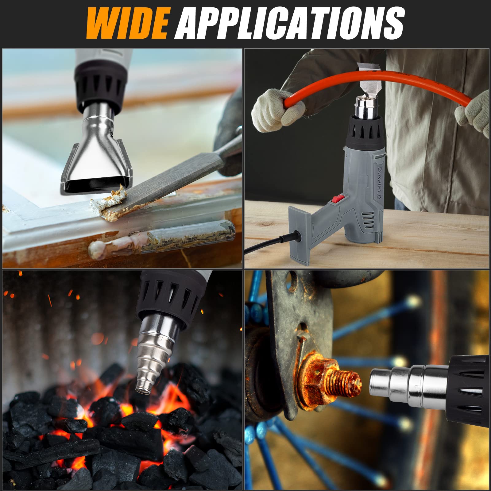 - Wide Variety of Applications: 4 nozzle attachments are included to meet many different application needs. Ideal use for shrink wrapping, epoxy resin, shrink tubing, crafts, cell phone repairs, vinyl wrap, paint removal, electronics repair, and so much more