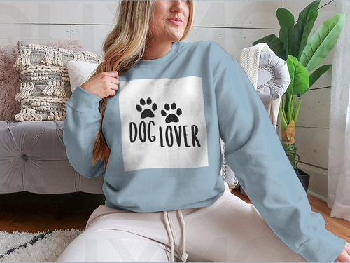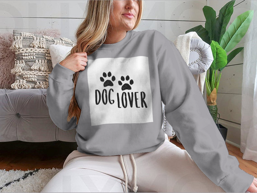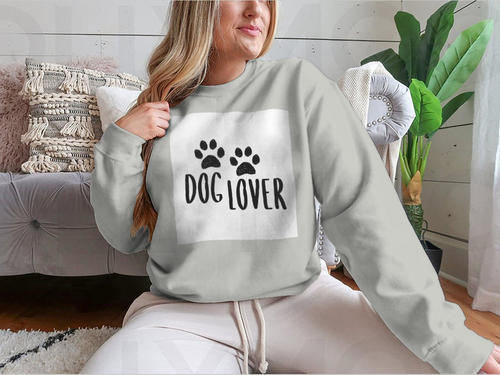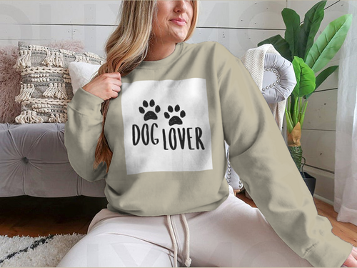 Dog Lover Cartoon Style Typography with Dog Paws Silhouette Design for