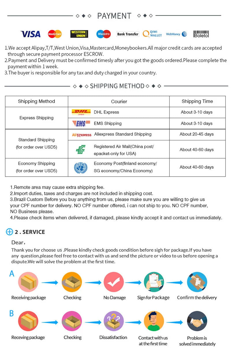 4 : Economic logistics will stop displaying logistics tracking information after arriving in the destination country. If you choose economic logistics, And when you cannot obtain tracking information, please do not start a dispute immediately. You can contact us first, and we will provide you with a new tracking number. You can contact the local logistics provider or the post office with this tracking number. Thank you.