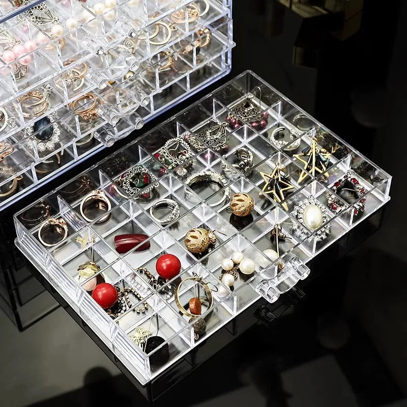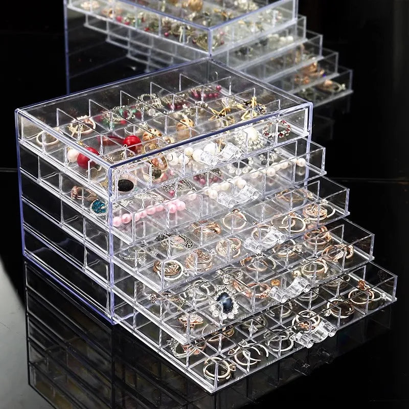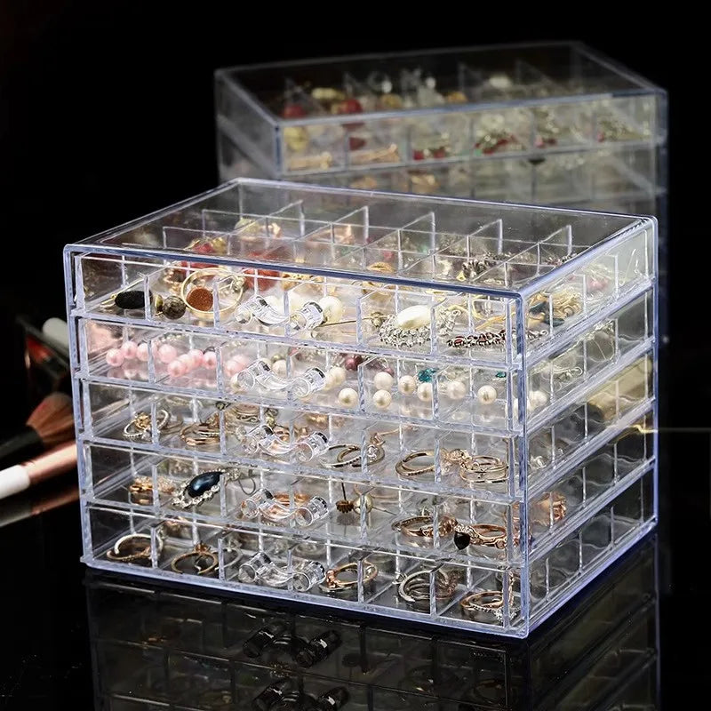 Earring earring storage box, jewelry storage box, 5 drawers transparent jewelry display rack, with 120 small lattice jewelry box