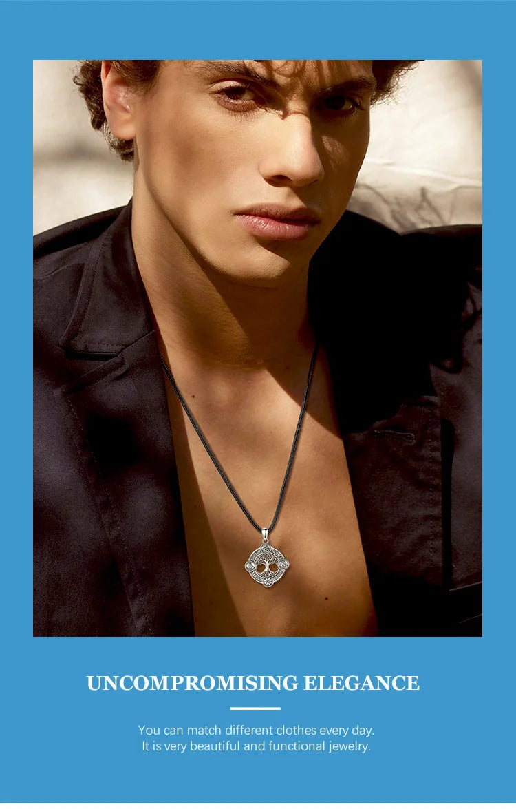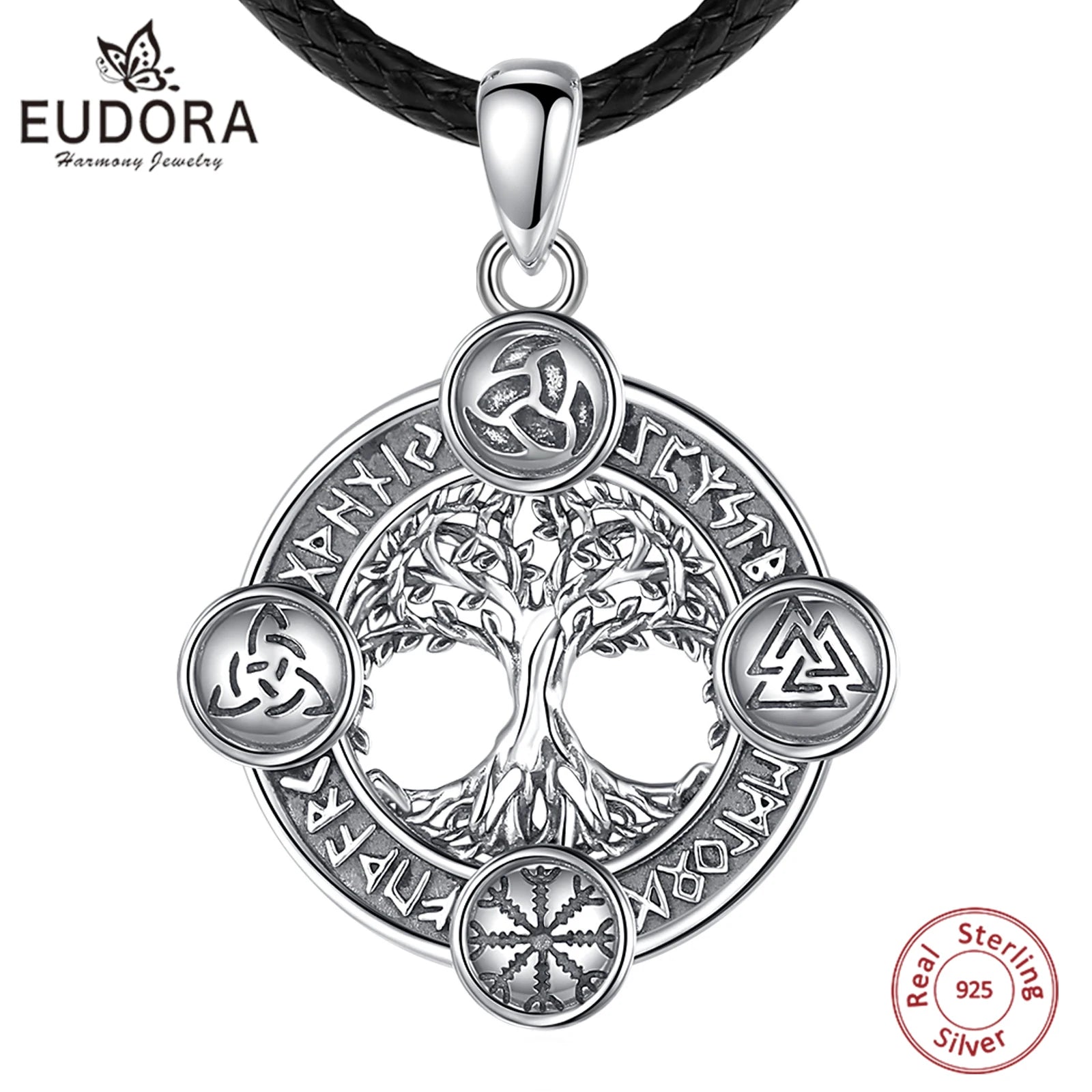 Eudora 925 Sterling Silver Tree of Life Necklace Norse runes Hexe Celtic Knoten Yggdrasil Amulett Pendant Man Viking Jewelry