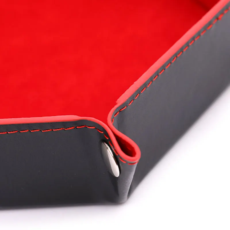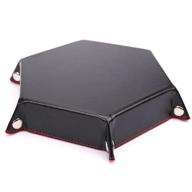 Foldable Dice Tray Box PU Leather Folding Hexagon Coin Square Game 12 Colors For RPG DnD Table Board Games