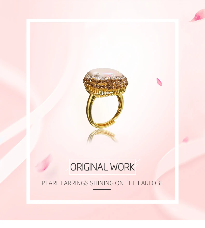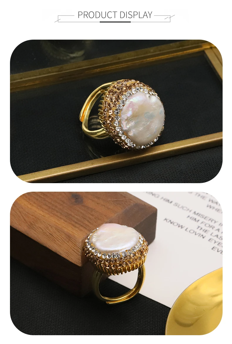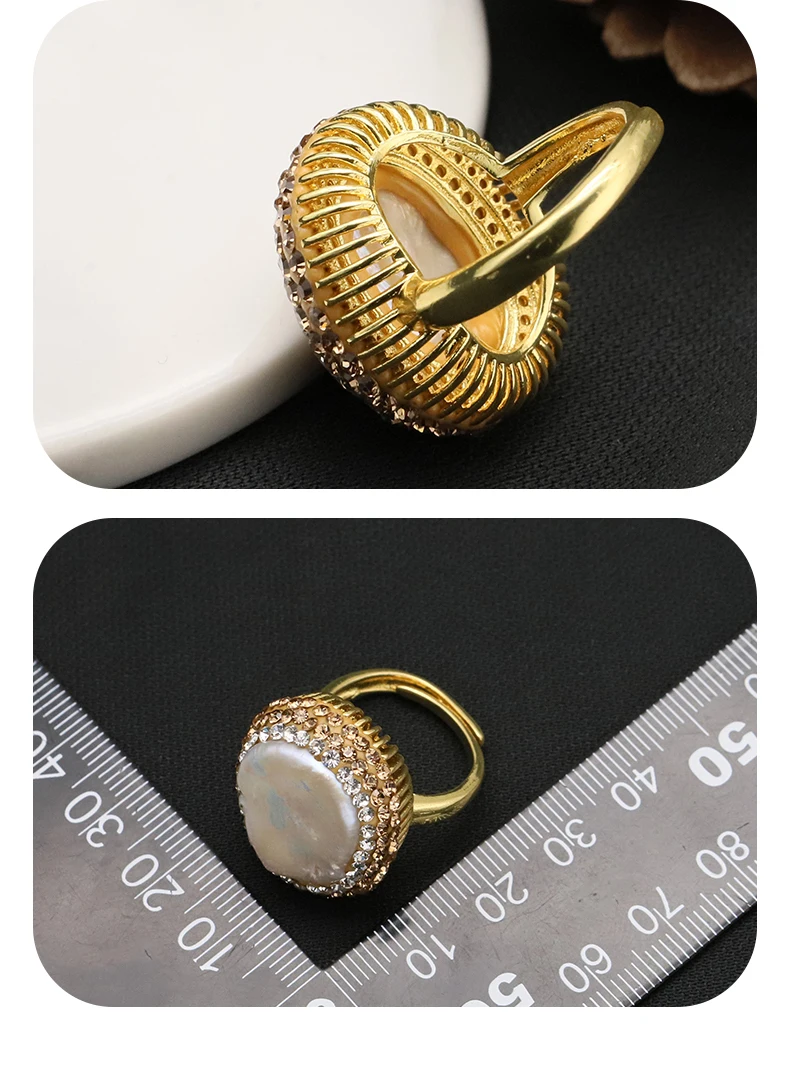GLSEEVO Baroque Freshwater Pearl Rings for Women Personalized Fashion Elegant Luxury Simple Ladies Banquet Exquisite Jewelry