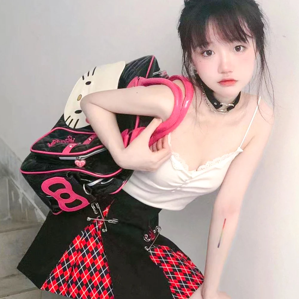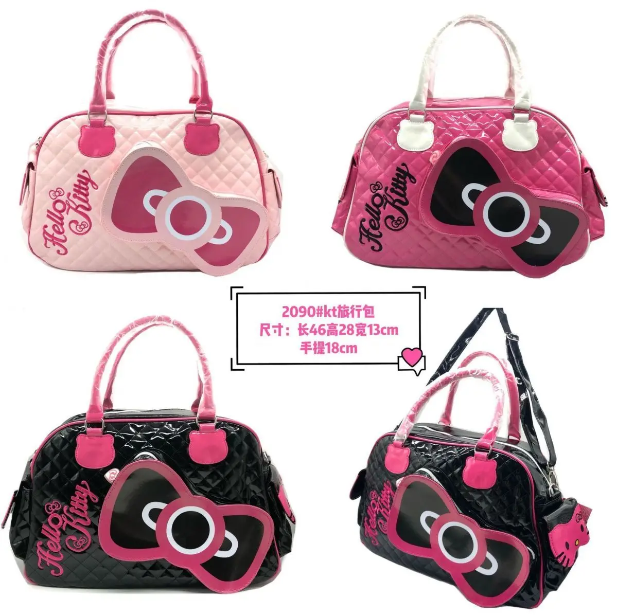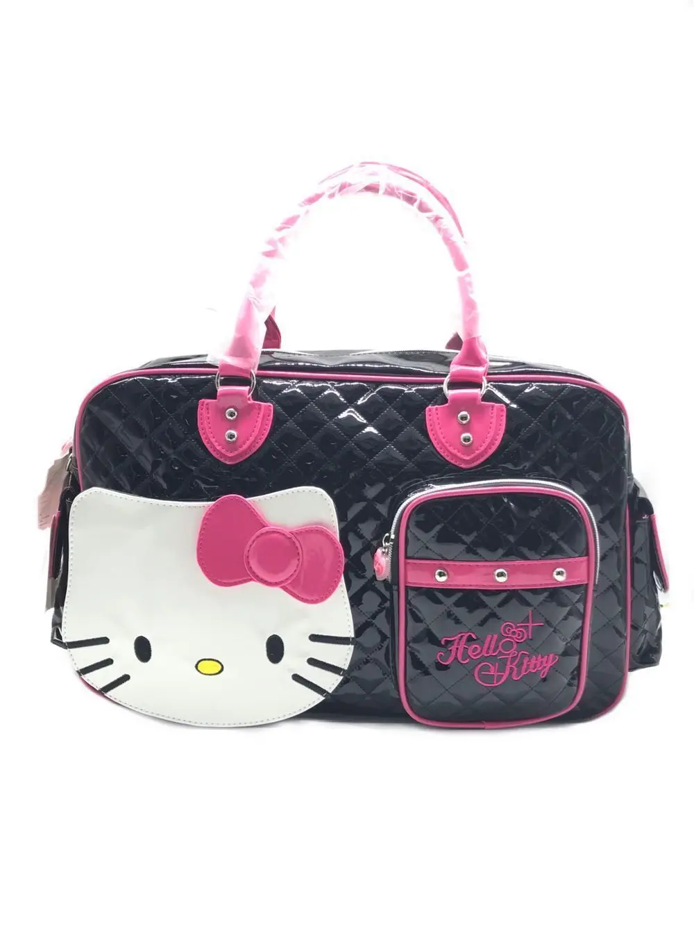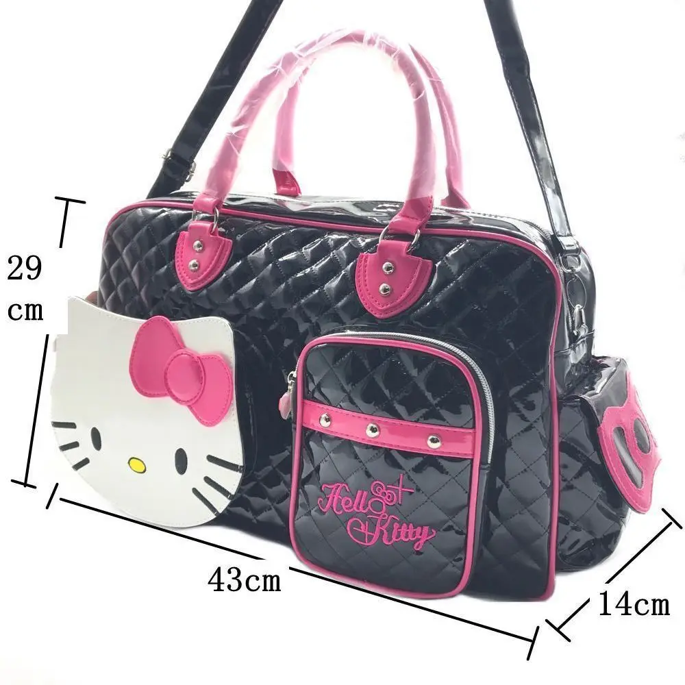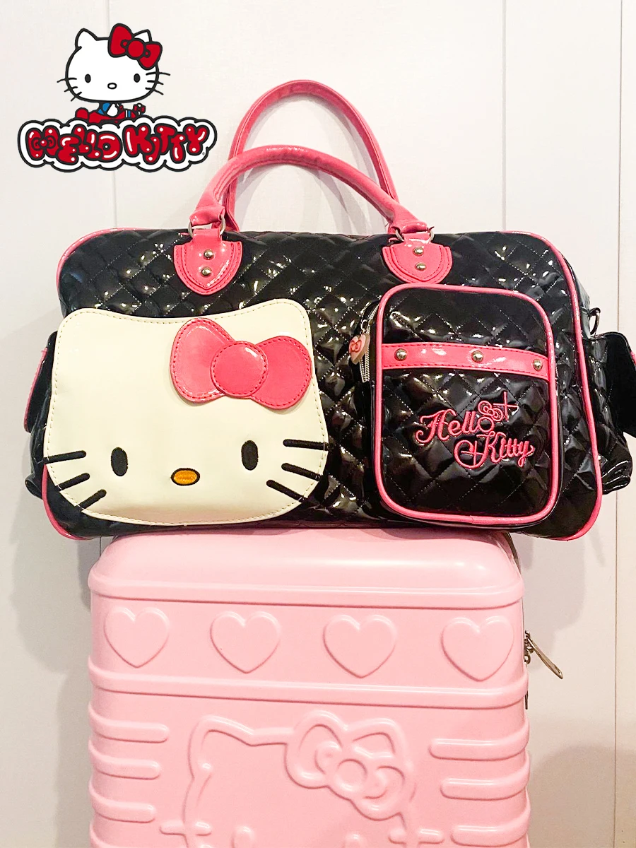 Hello Kitty Kawaii Sanrio Y2k High Capacity Handbag Messenger Bag Cartoon Pu Bright Surface Travel Bag Girls Fashion Travel Bag