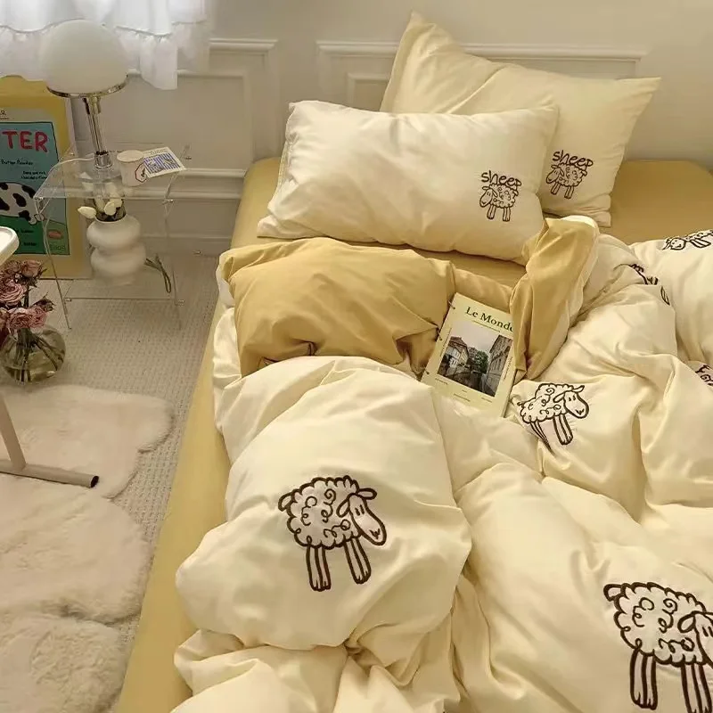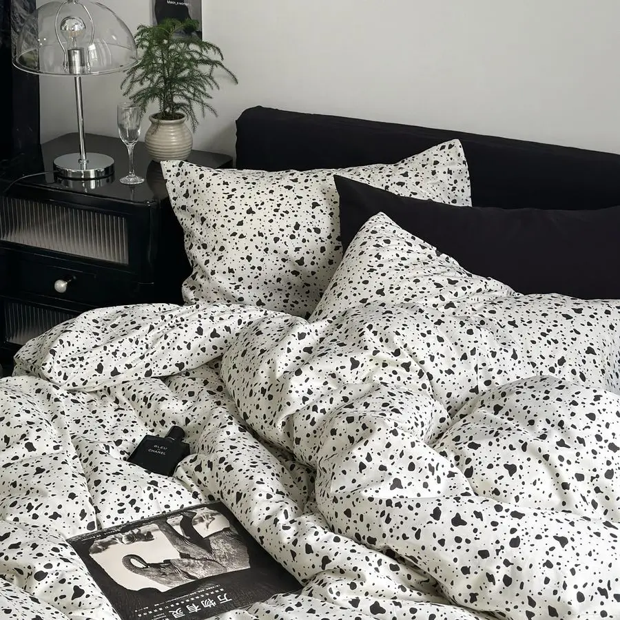 Ins Nordic Black Dot Bedding Set Flat Bed Sheet Duvet Cover Twin Full Queen Nordic Bed Linen Boy Girl Bedding Sets