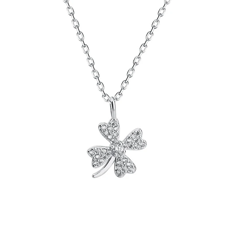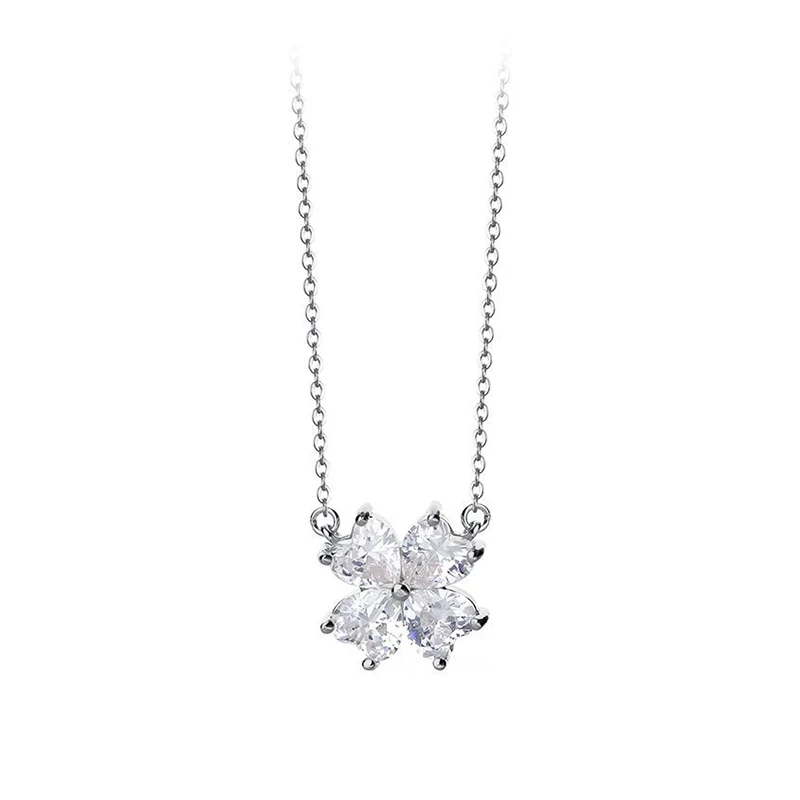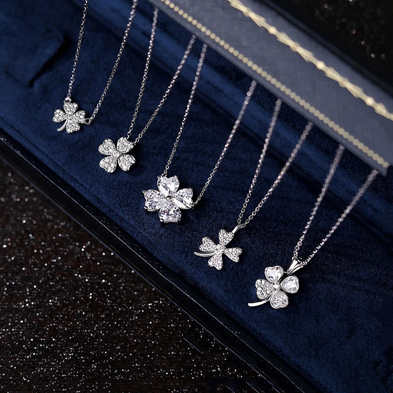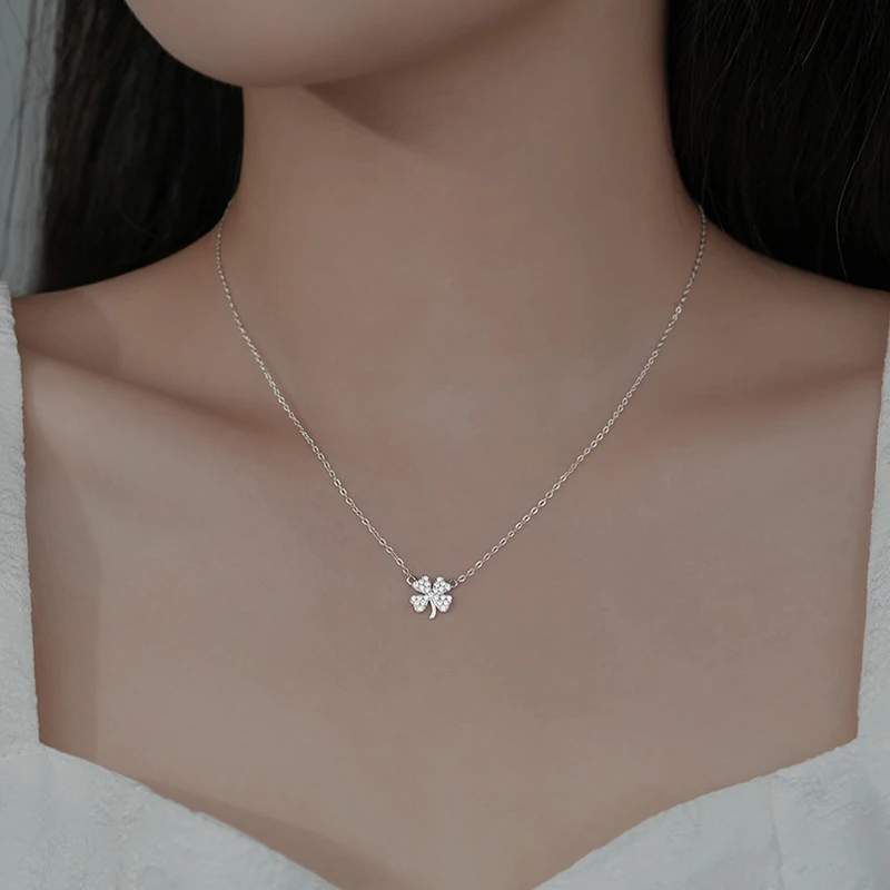 INZATT Real 925 Sterling Silver Zircon CZ Clover Series Pendant Choker Necklace for Women Light Luxury Fine Jewelry Accessories