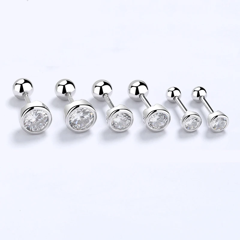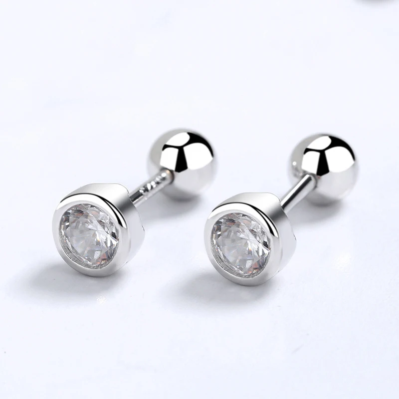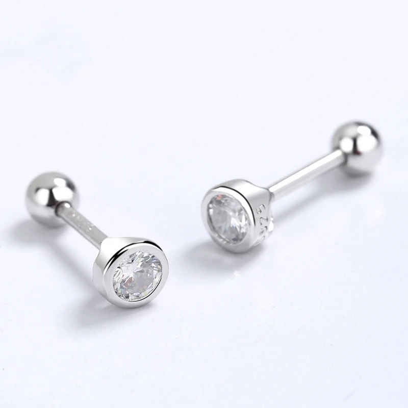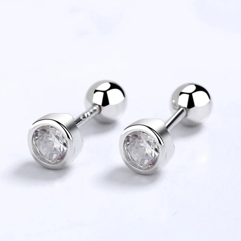 INZATT Real 925 Sterling Silver Zircon Round Screw Thread Bead Stud Earrings For Women Fine Jewelry Minimalist Accessories