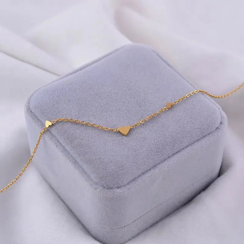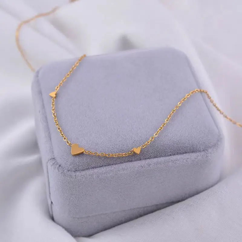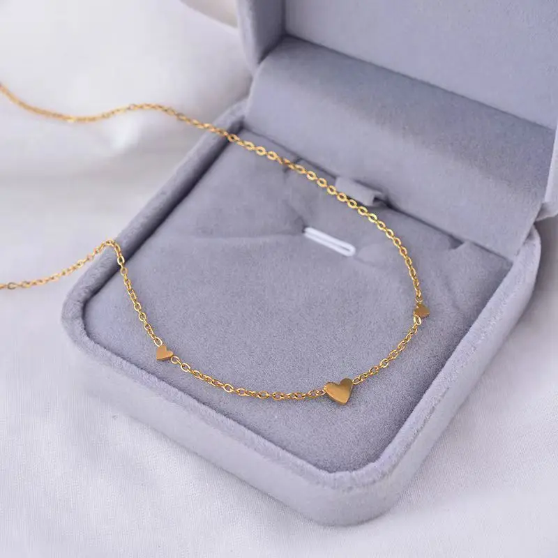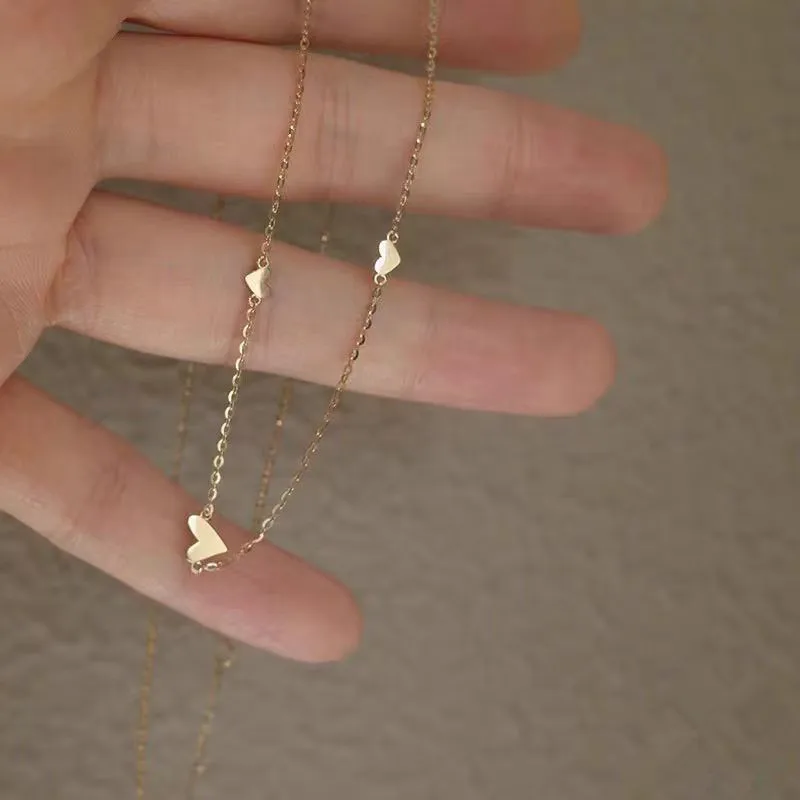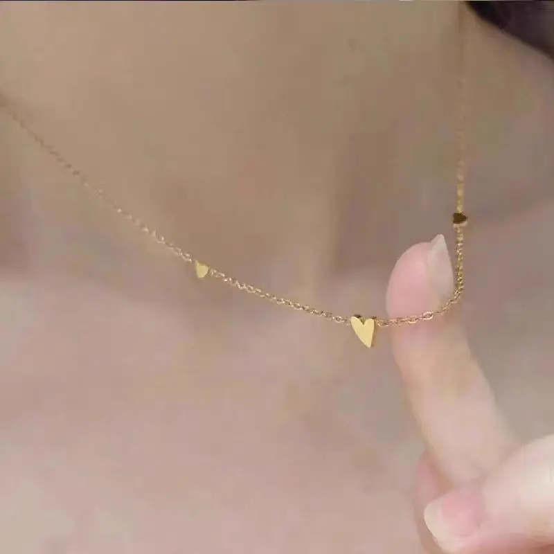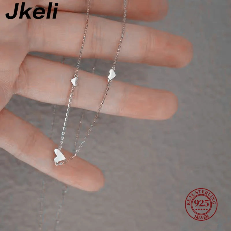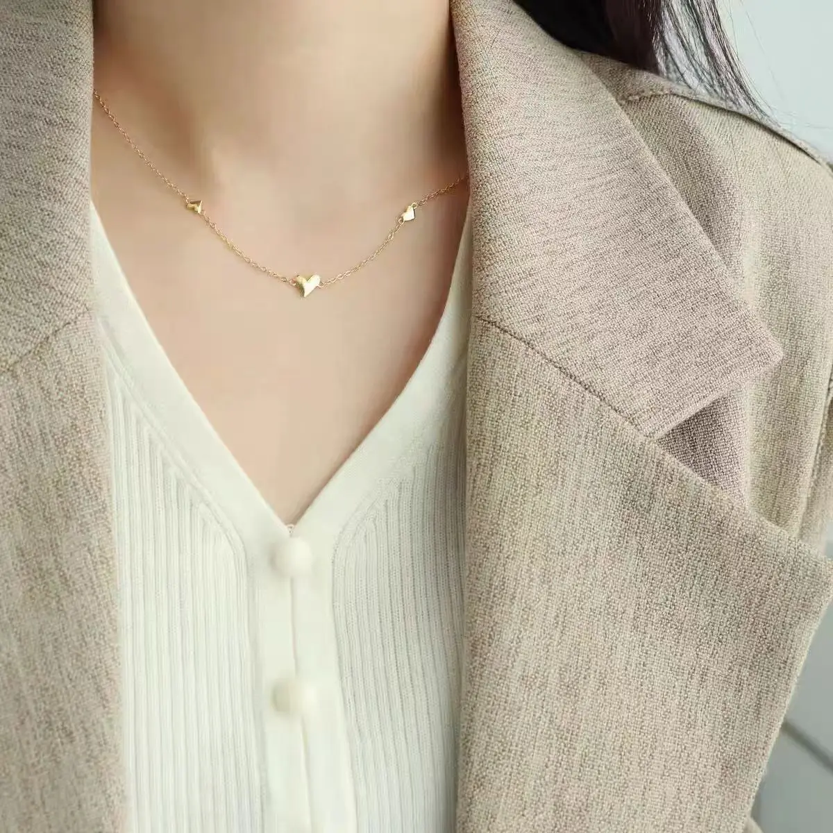 Jkeli S925 sterling silver necklace three hearts plated with 18k gold simple heart-shaped clavicle chain for women